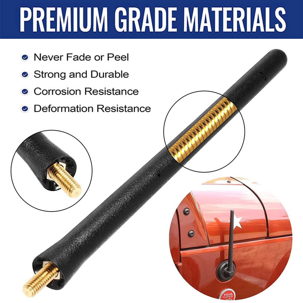 ???Vehicle Fitment?-Basiker Car Antenna Fits For 2007 2008 2009 2010 2011 2012 2013 2014 2015 2016 2017 2019 2020 2021 2022 2023 2024 Jeep Jk Jl Jlu Sahara Rubicon 4Xe Unlimited Gladiator Wrangler Antenna Works Well On Your Car. | ???Strong Reception? - Basiker Antenna For Jeep Is Designed For Optimized Car Radio Am Fm Reception And Does Not Affect The Use Of Gps And Other Devices. The Copper Coil Made The Radio Wrangler Antenna Perform Better In Reception Than Other Low Profile Jeep Wrangler Gladiator Accessories Antennas. You Can Enjoy Clear Reception From A Lot Of Local Radio Stations. | ???Premium Material?-Chilean Copper Core And Thai Rubber Make The Basiker Gladiator Antenna Long-Term Use On The Basis Of High-Quality Signal Reception, Reducing Damage And Loss Caused By Bad Weather And Car Wash. | ???Easy Installation?-Basiker Short Jk Antenna Replacement Is Designed According To The Factory Original Vehicle Antenna Base. A Screw Is Included, Replace New Antenna In 30 Seconds Without Any Tools. | ???After-Sales Service? If You Have Any Questions, Please Feel Free To Click ''Basiker'' Under The ''Buy Now'' Button, And Then Click ''Ask'' For Help. We Use Amazon'S Warehouse, So Returns And Exchanges Are Very Convenient.
