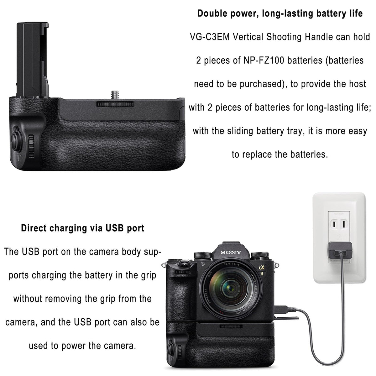 Vertical Battery Grip For Sony A7Riii A7Iii A9 Cameras, Used To Replace The 7.2V 2280Mah Rechargeable Lithium-Ion Battery Of Sony Np-Fz100,Replaces Sony Vg-C3Em Size And Weight :127*67.2*107.8Mm , 220G