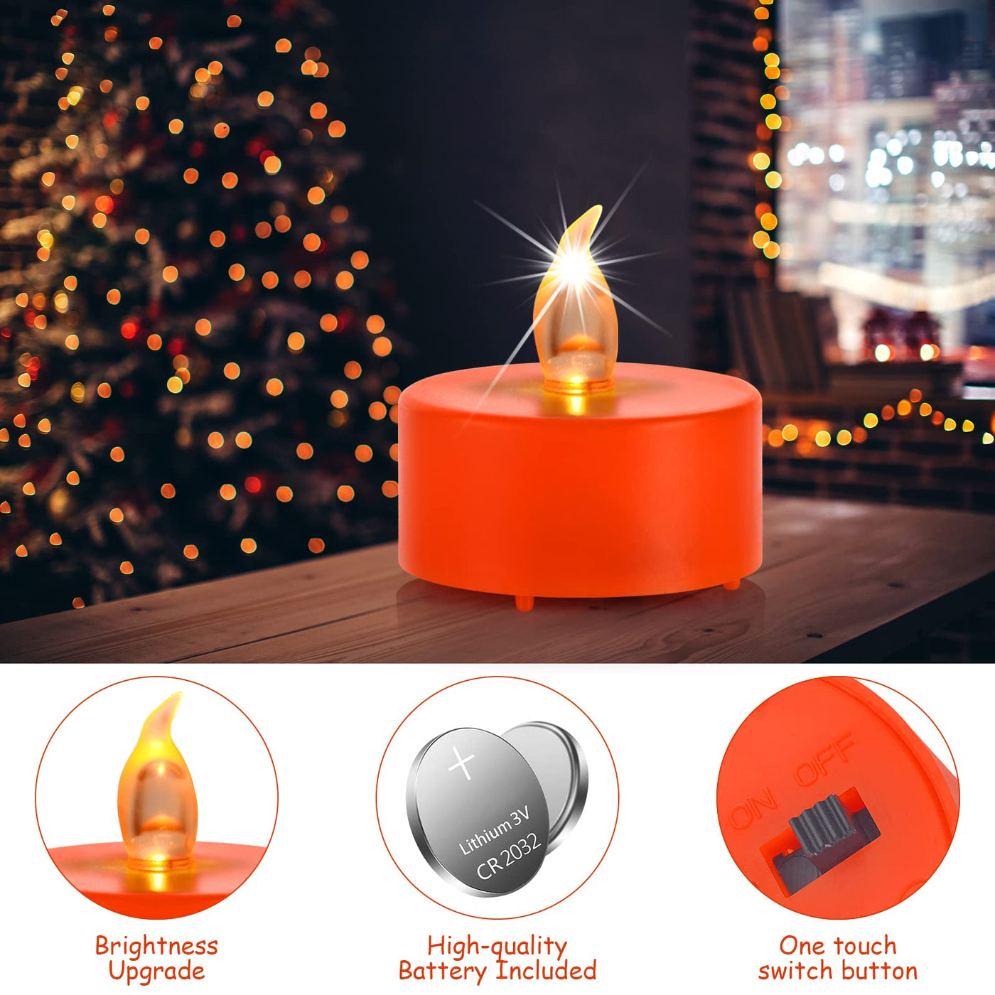Hanzim Tea Light Candles Create A Warm, Relaxing Ambience In Your Bedroom, Living Space Or Even A Bubble Bath, Add A Romantic Touch To Your Holidays, And Have A Wonderful Romance With Your Family Whenever You Need It Time 24 Pcs Led Orange Tea Candle Set With Realistic Twinkling Light Effect And Warm Tones, No Burning Flame And Smell, Very Safe, Also Perfect For Home Decor, Yard Decoration And Holiday Party Specification: Material: Led+Pp Size: Diameter 37Cm14Inch+ Height 37Cm Battery: Cr2032 Button Cell Battery Life: 150+Hours Light Color: Warm Yellow Appearance Color: Orange