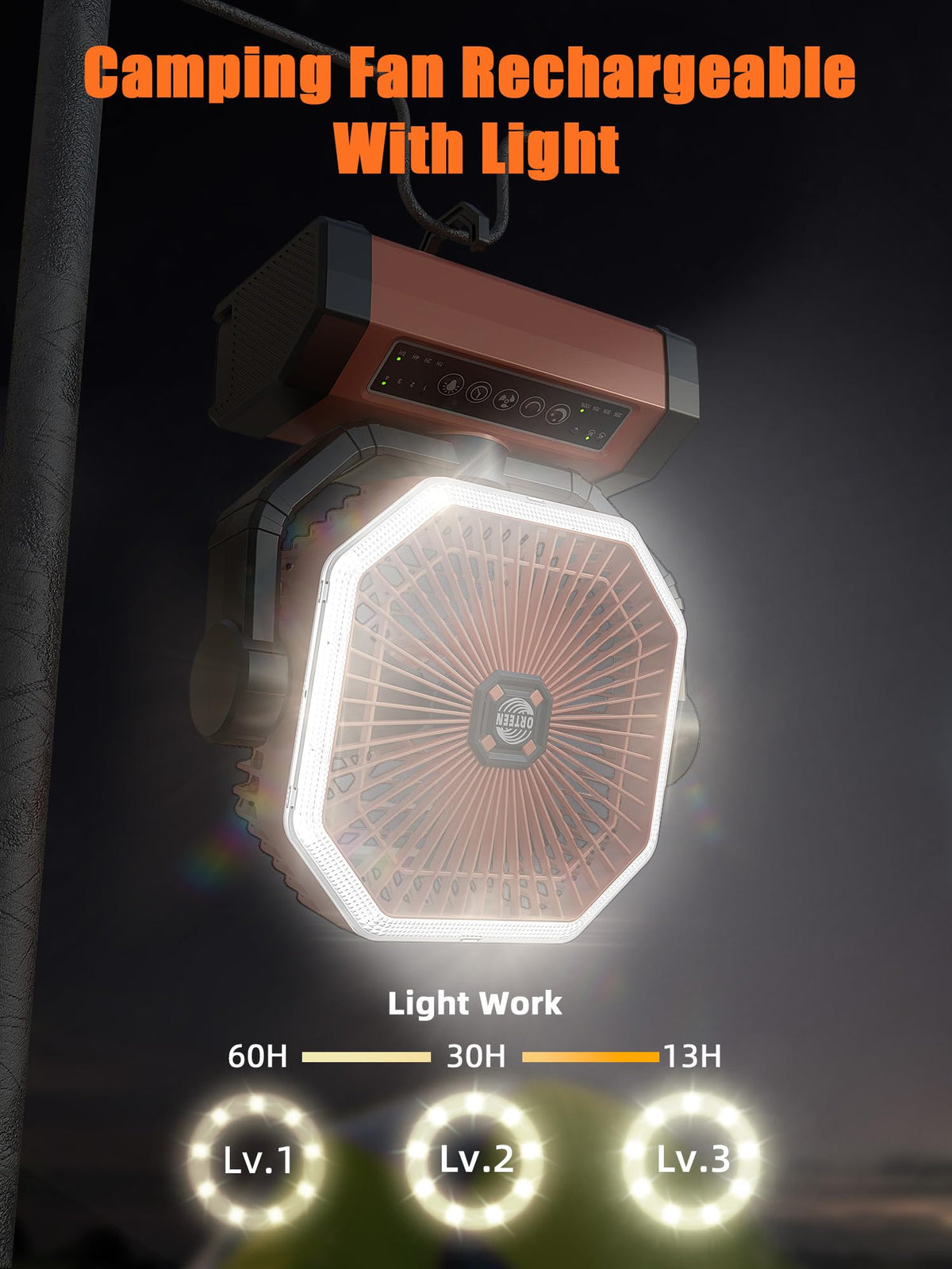 Q: Is there a sleep timer feature on this fan?A: Yes, the fan includes a sleep timer that allows you to set the operation for 1, 2, 4, or 8 hours, helping you save battery life during the night.