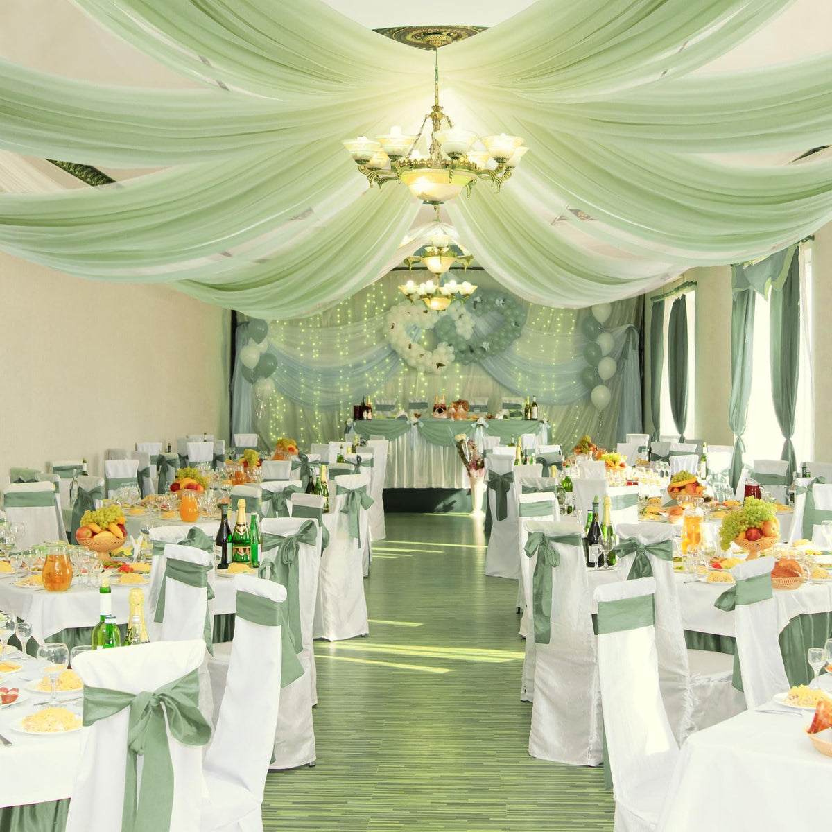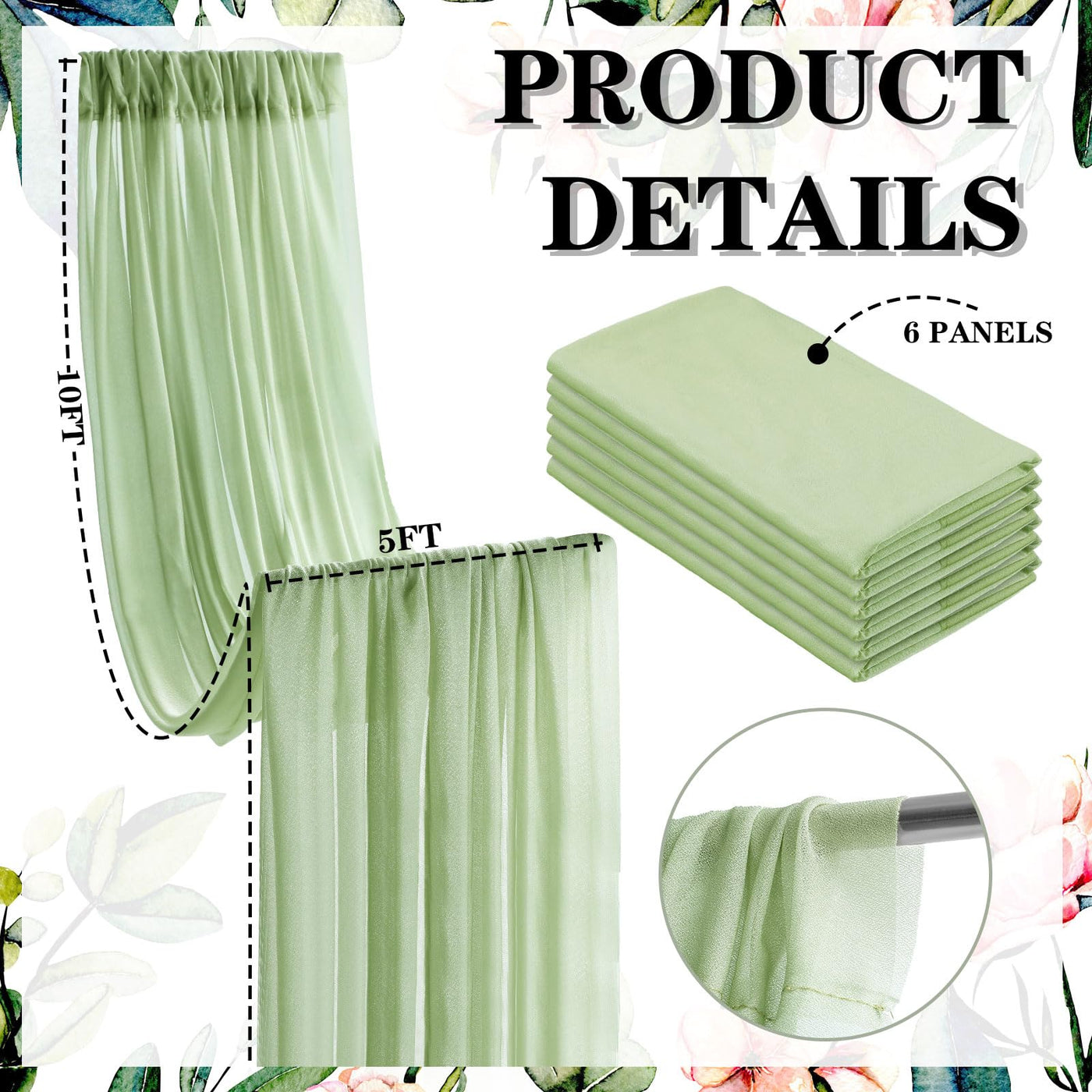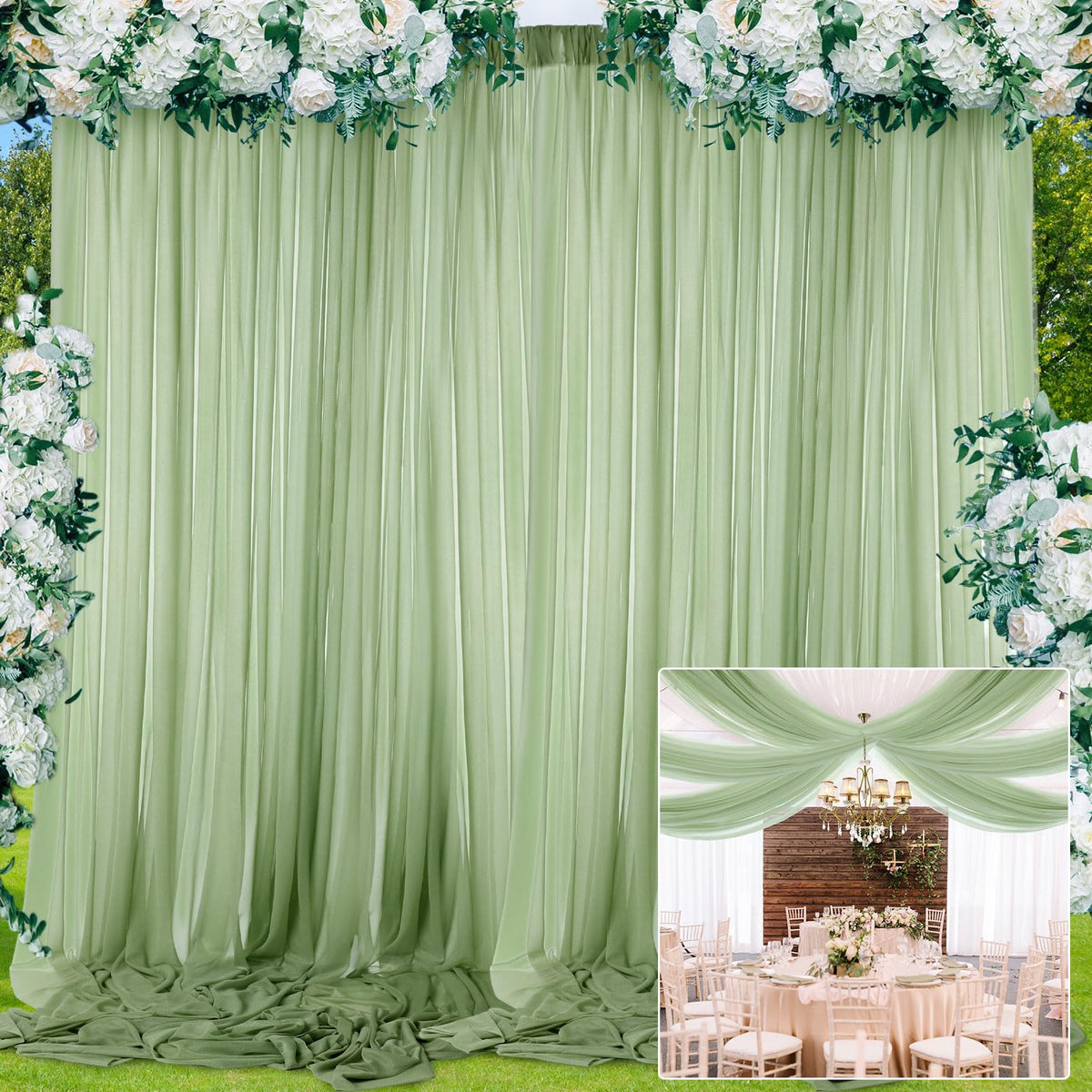 Bbto 6 Panels Sage Ceiling Drapes For Weddings 5 Ft X10 Ft Green Chiffon Curtain Wedding Ceiling Drapes Sheer Curtains Chiffon D