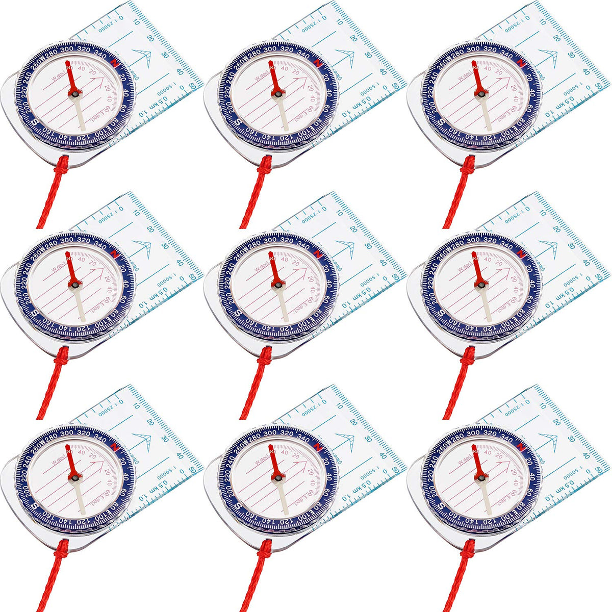 Features:Easy To Carry:The Compass Is Small And Has A Rope That Can Be Placed In Your Pocket Or Neck, Suitable For Men, Backpackers, And Women.Orienteering Compass:The Compass Is Versatile And Can Be Applied For Hiking, Driving, Boating, Camping, Hiking, Hunting, Backpacking, Jungle Hunting And Other Outdoor Activities.Accurate Positioning:With A Variety Of Scales For Precise Route Planning, The Map Compass Uses The Tilt Adjustment Function During Camping And Geological Processes To Determine The Position, Grasp The Position And Find The Direction.Good Readability:This Compass Clearly Reads The Logo On The Map And Also Has A Magnification Function.Specifications:Color: As The Picture Showsmaterial: Acrylicpackage Includes:9 X Compassesnote:Suitable For Extreme Weather And Rugged Terrain.The Rope Section Is Adjustable.