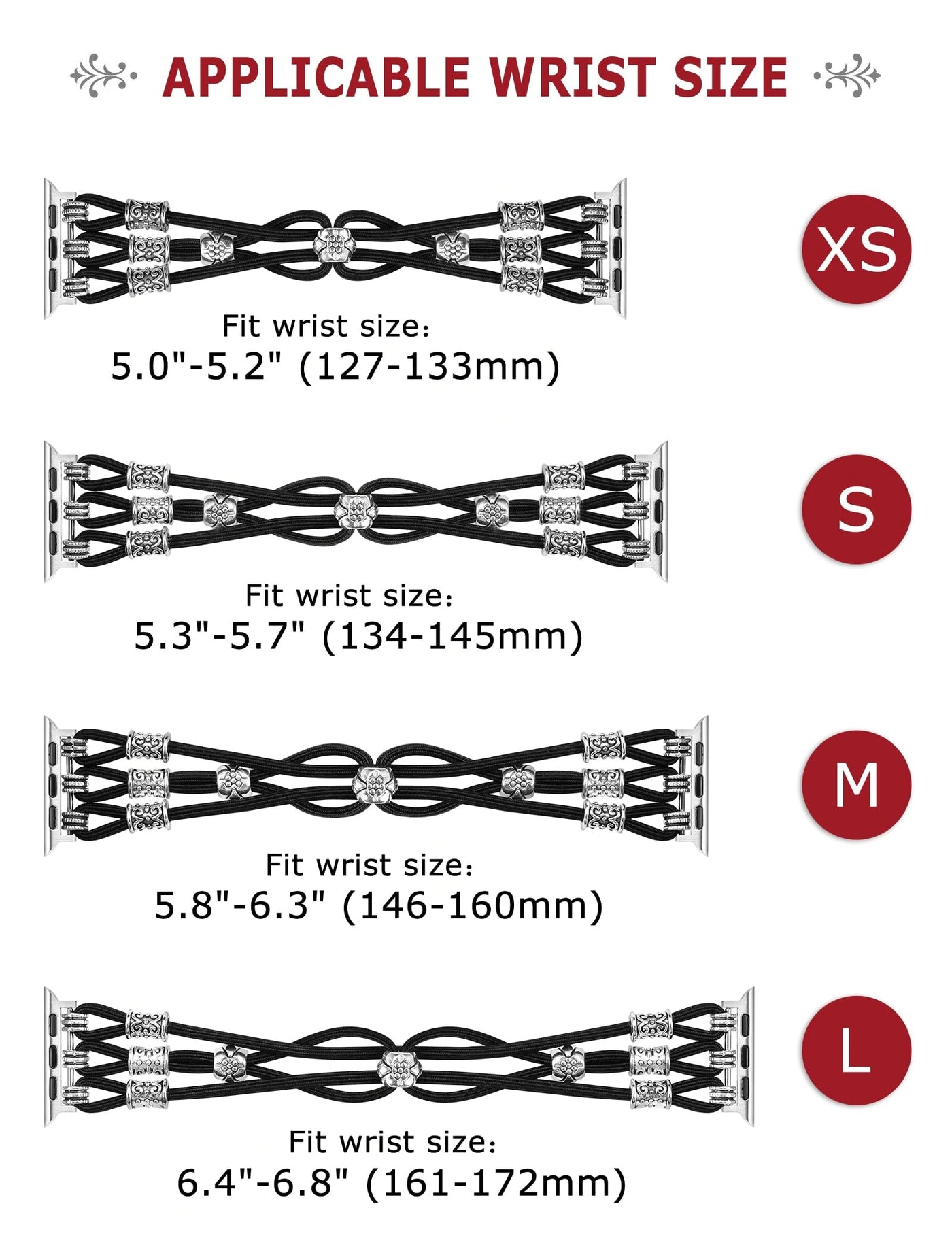 Q: Is this beaded bracelet compatible with all Apple Watch models?A: Yes, this beaded bracelet is compatible with Apple Watch models 38mm, 40mm, 41mm, 42mm, 44mm, 45mm, and 49mm, including Series 1 through Series 8 and SE.
