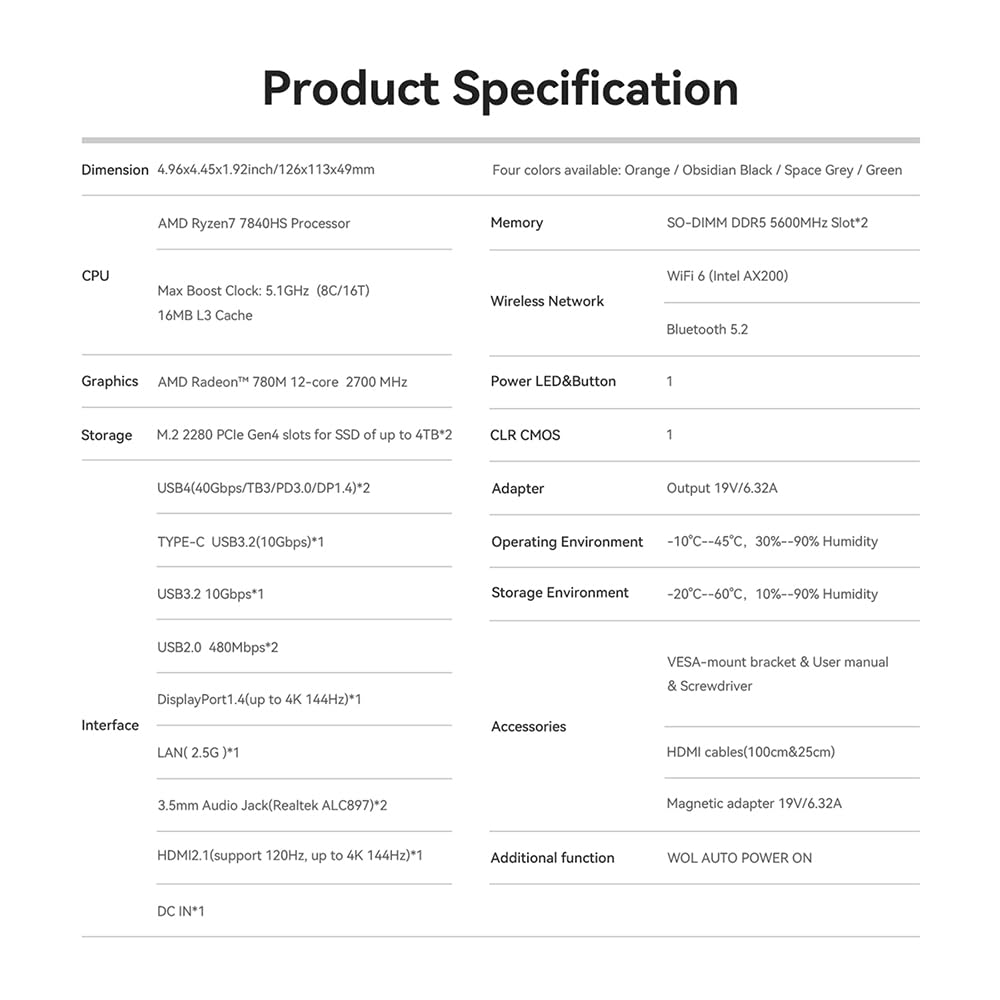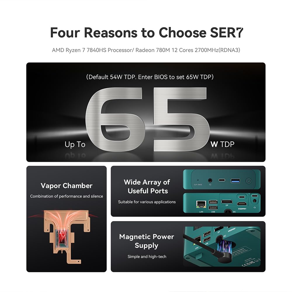 Beelink Ser7 Ryzen 7 7840Hs, 8C/16T, Up To 5.1Ghz Mini Desktop Computer, 32Gb Ddr5, 1Tb Nvme M.2 Ssd, Quad Display 2*Usb4, Wi Fi