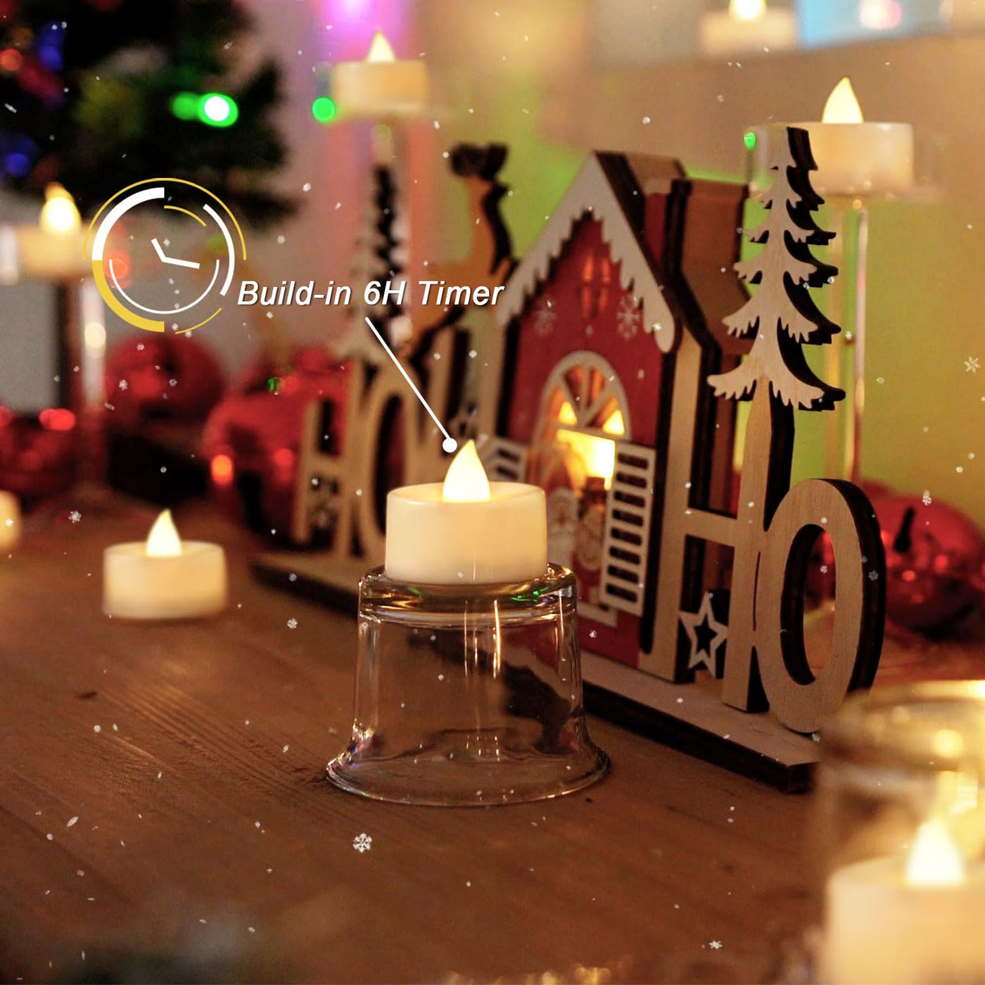 Beichi 24Pcs Battery Operated Tea Lights With Timer, Built In 6 Hours Tea Light, Warm White Flickering Electric Tea Candles With