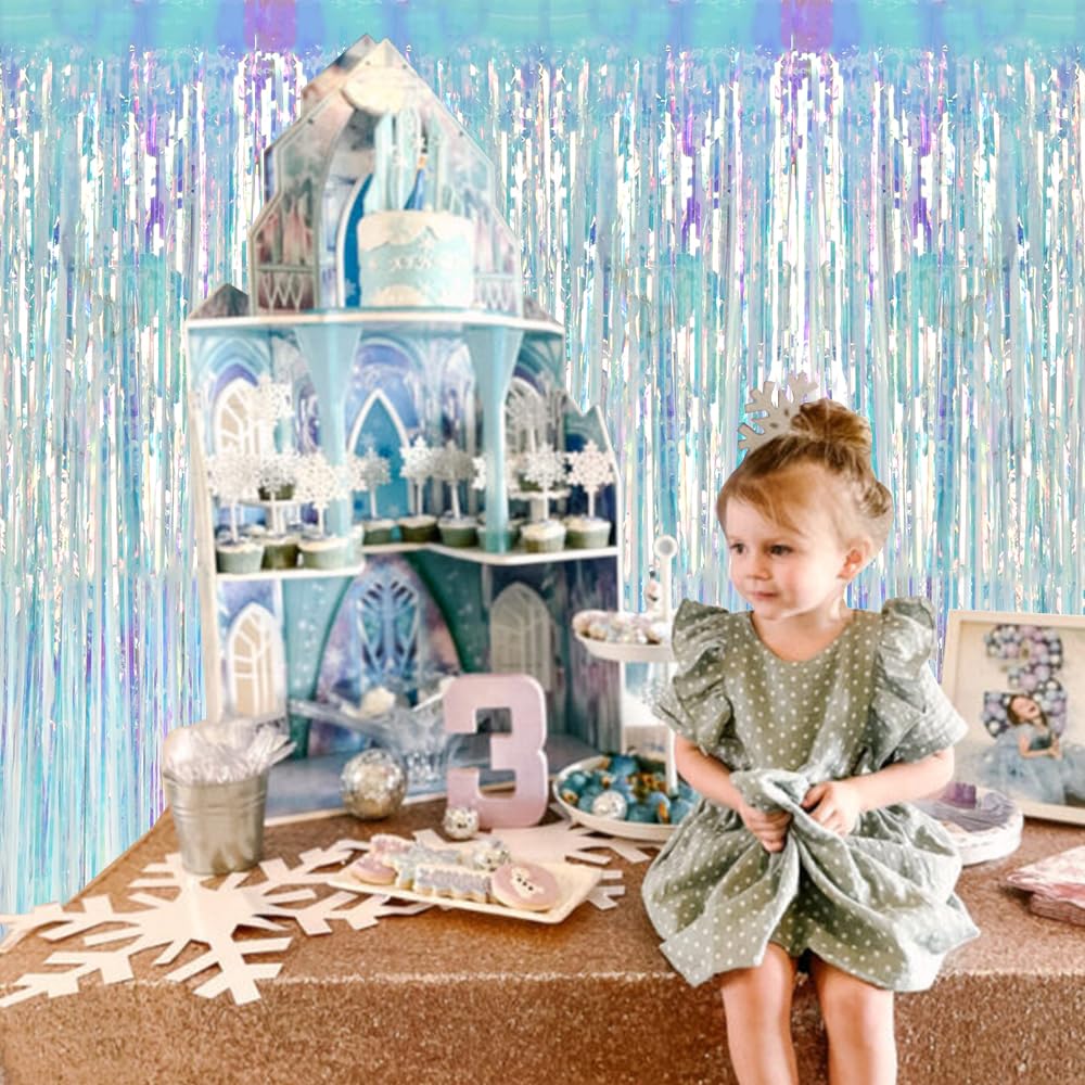 Beishida 2 Pcs Door Streamers Curtain Iridescent Streamers Baby Shower Party Streamers Backdrop Party Decorations Wall Backgroun