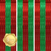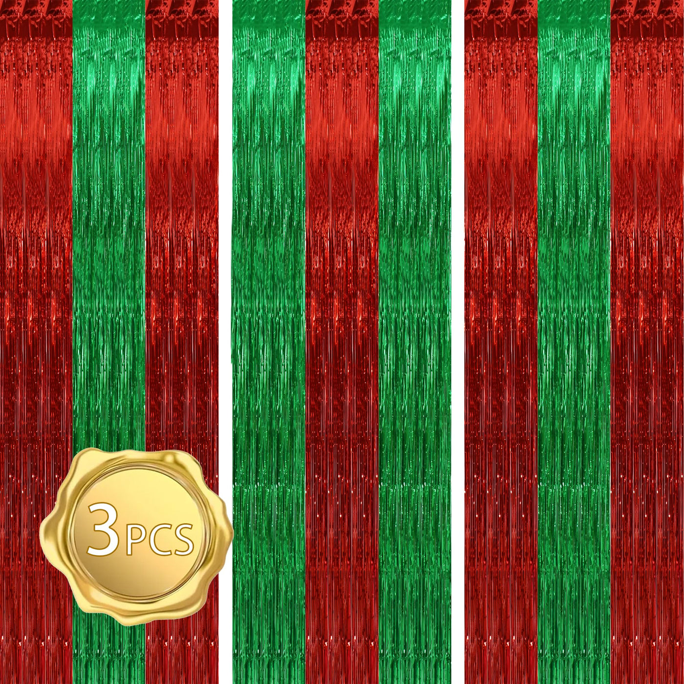 Beishida 3Pcs Red Green Door Streamer Christmas Day Backdrop Foil Fringe Tinsel Merry Christmas Curtains Backdrops For Christmas