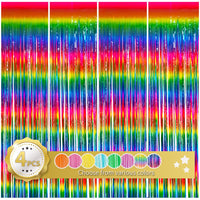Beishida 4 Pack Rainbow Foil Fringe Curtain Steamers Party Backdrop Tinsel Metallic Curtains Photo Backdrop For Door Birthday