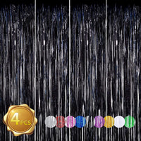 Beishida 4 Pcs Black Door Streamers Tinsel Curtain Party Streamers Backdrop Fringe Foil Wall Background For Birthday Halloween C
