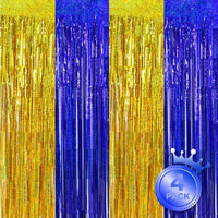 Beishida 4 Pcs Blue And Gold Party Streamers Fringe Foil Curtain Backdrop Tinsel Background Party Decoration For Door Wall Gradu