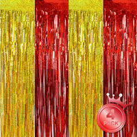4 Pack Red&Gold Party Streamers - The Foil Curtain Streamers Is Suitable To Decorate All The Party Theme: Birthday Party, Baby Shower, Wedding Party,Kids Birthday Party, Outdoor Party. You Can Decorate The Walls, Window, Doors With This Rainbow Crepe Paper To Make Your Party Interesting.