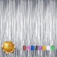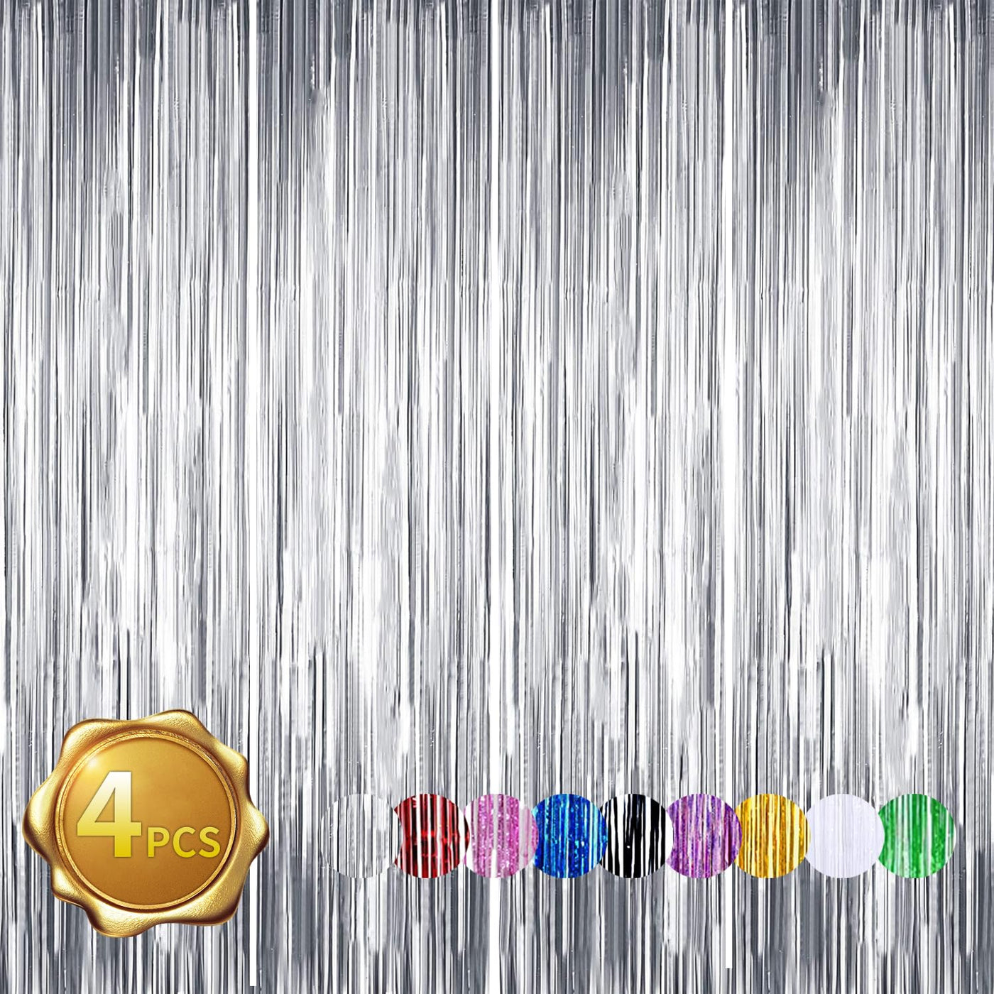 Beishida 4 Pcs Silver Door Streamers Tinsel Curtain Party Streamers Backdrop Fringe Foil Wall Background For Birthday Halloween