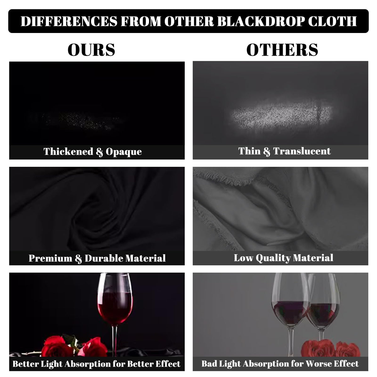 Beiyang Black 10Ft X 20Ft Large Photography Backdrop Screen Non-Reflective Fabric Wrinkle Resistance Photo Background