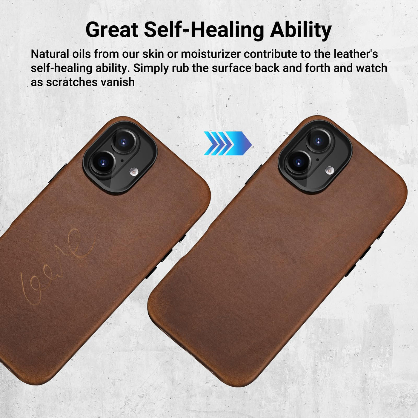 Belemay Compatible With Iphone 16 Leather Case, Compatible With Magsafe, Premium Crazy Horse Leather [Vintage Aesthetic] Comfort