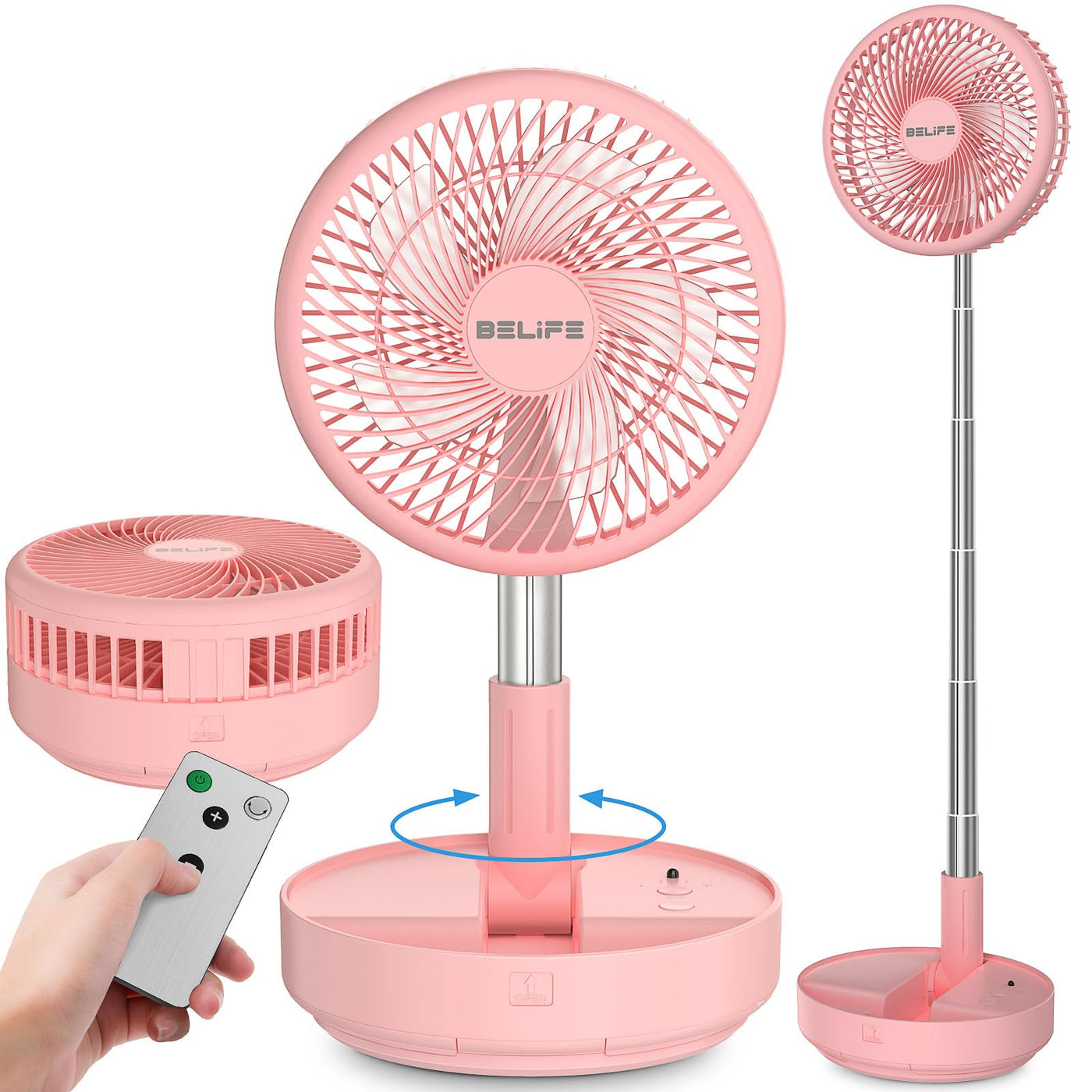 This Belife Multi-Functional Portable Oscillating Fan With 4 Cooling Speeds. Foldable And Extendable, It Can Be Used As A Personal Desktop Fan, A Pedestal Fan Or A Standing Fan To Meet Your Different Needs. Easy To Store And Carry Around When Going Out. This Fan Is Cordless And Equipped With A Remote Control. The 7200Mah Rechargeable Battery Supports Long-Term Operation, Accompanying You Throughout The Summer, Enjoying A Cooling Breeze.
