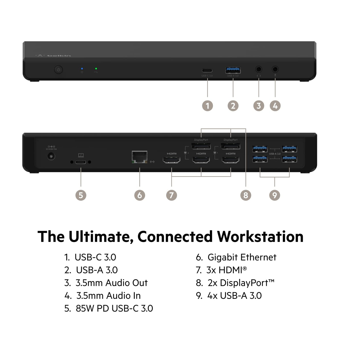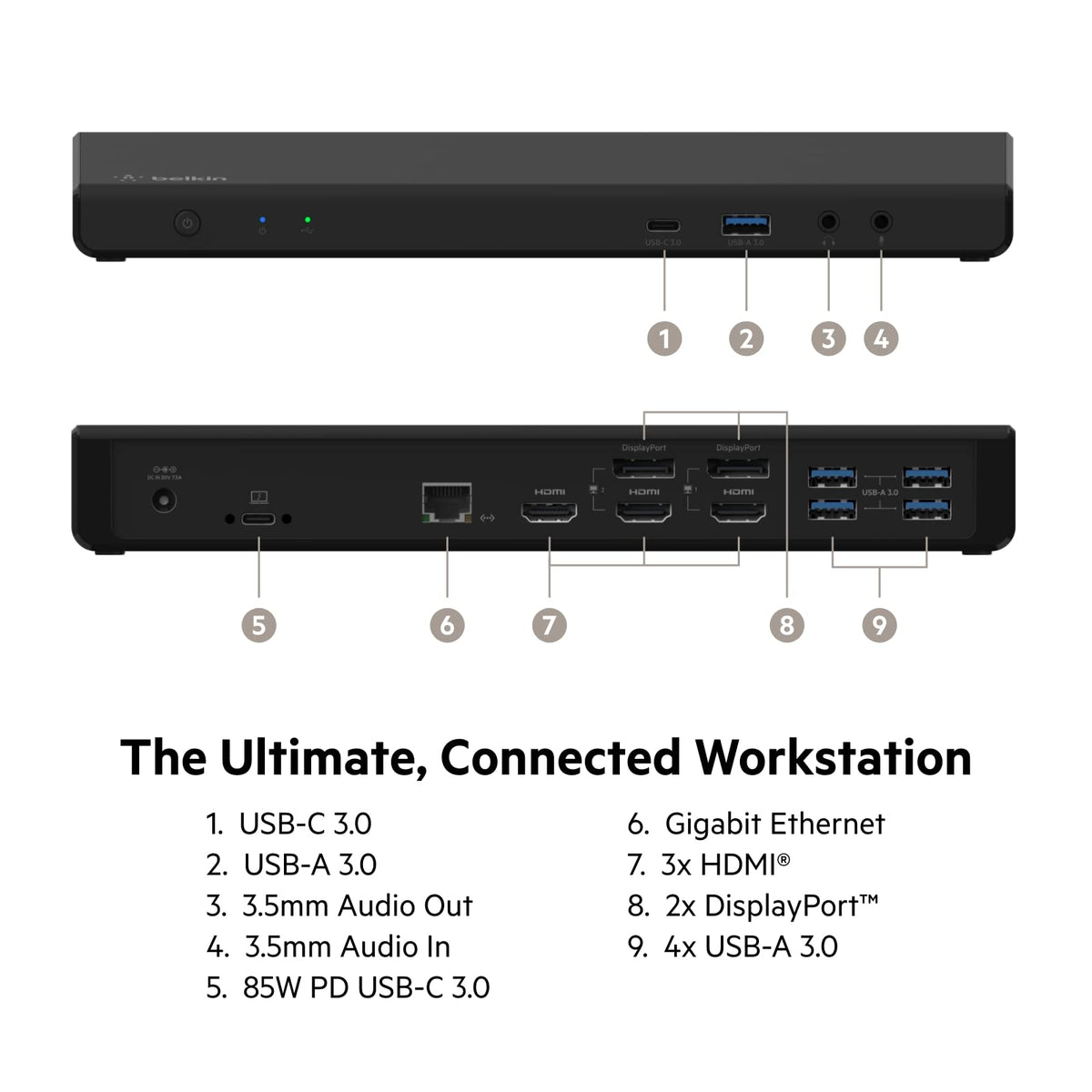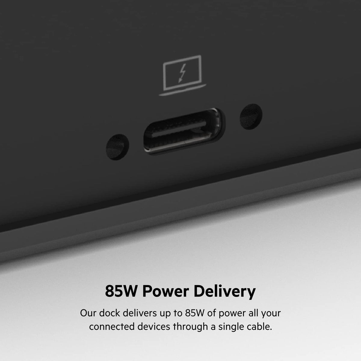 Display your content on one, two, or three monitors (up to 4K) with our triple display USB-C� dock. It features universal DispalyLink technology and features 2 DisplayPort ports and 3 HDMI video ports so you can connect a MacBook, Chromebook and Windows laptop to external monitors. You can access all your peripherals with 5 USB-A ports, Gigabit Ethernet port, audio in/out, and up to 85W USB-C PD port.