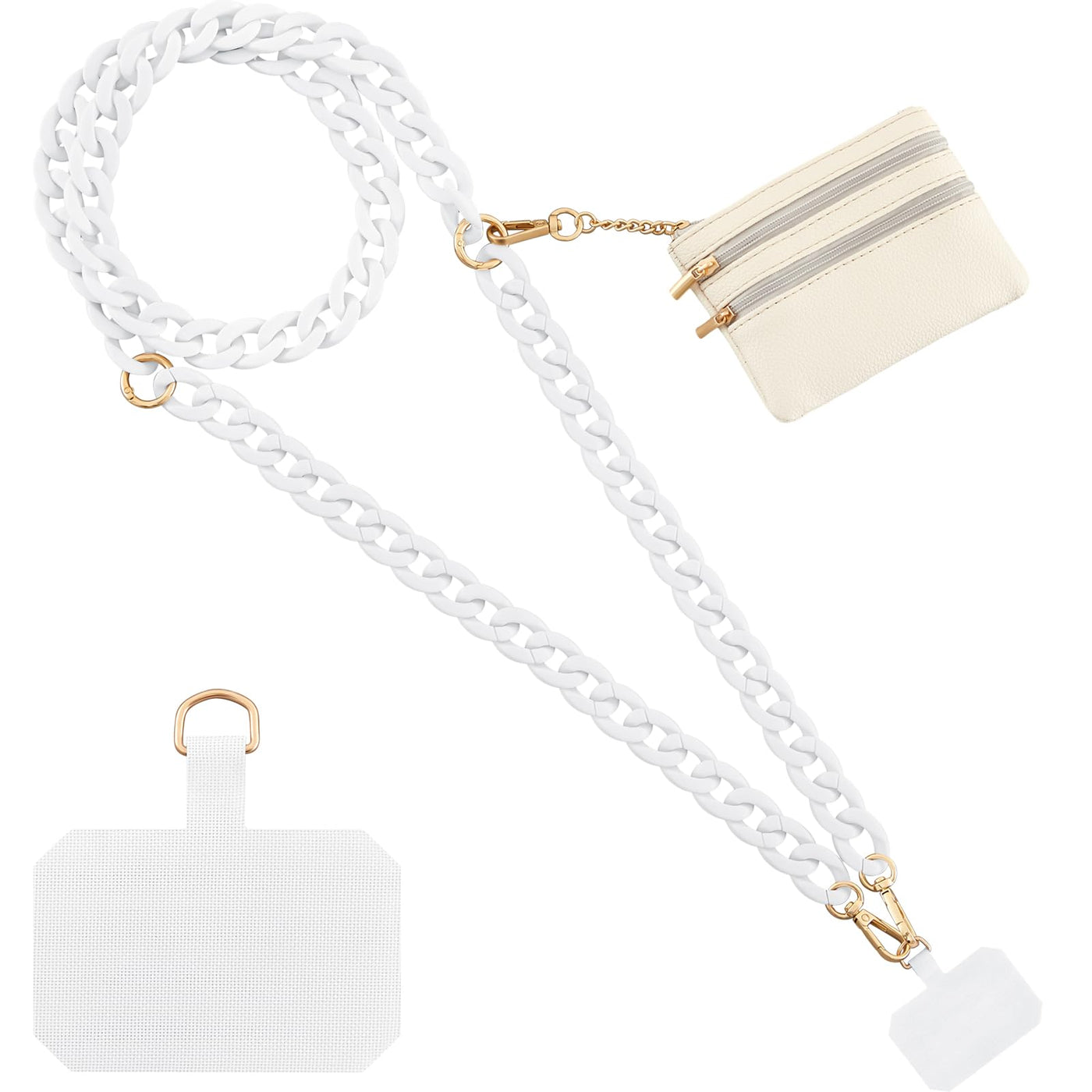Bememo Clip And Go Strap For Phone With Wallet, Adjustable Crossbody Universal Phone Chains With Zippered Pouch For Women(White)