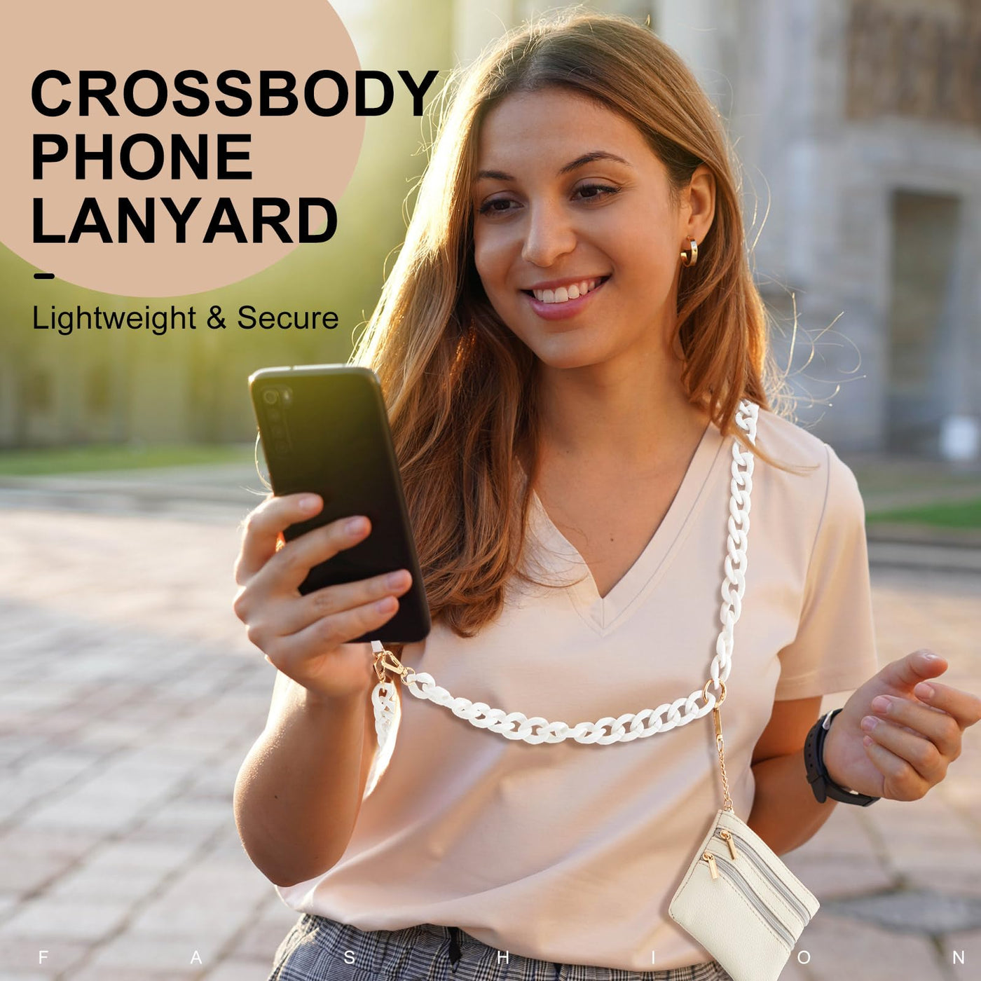 Features: The Crossbody Phone Chain Strap Features A Stylish And Practical Design That Doubles As A Fashion Accessory While Securely Holding Your Phone, The Chain With Pouch Allows You To Carry Essentials, Cash And Cell Phone Are Always Accessible, Leaving Your Hands Free Designed For Convenience, Our Crossbody Phone Chain Strap Allows You To Wear Your Phone Comfortably Around Your Neck, Shoulder Or Even As A Phone Chain Wristlet, Ensuring Its Always Within Reach. Specifications: Material: Acrylic, Metallic, Pu Color: White Size: Total Length About 59 Inches/ 150 Cm Package Includes: 1 X Crossbody Phone Chain Strap Notes: Manual Measurement, Please Allow Slight Errors On Size. The Color May Exist A Slight Difference Due To Different Screen Displays.