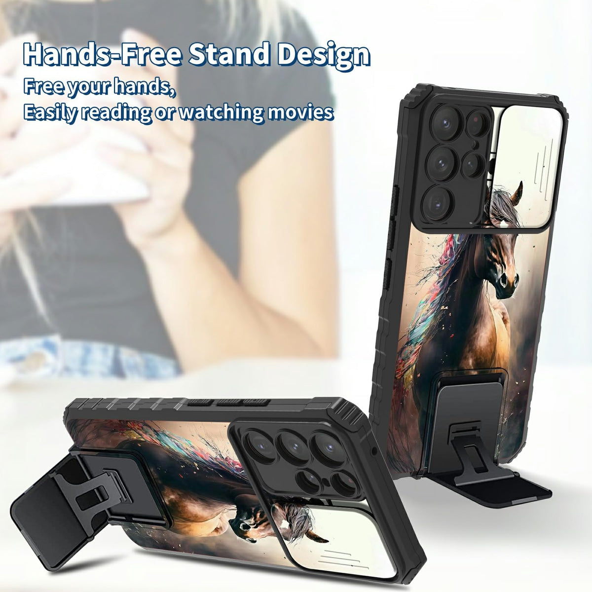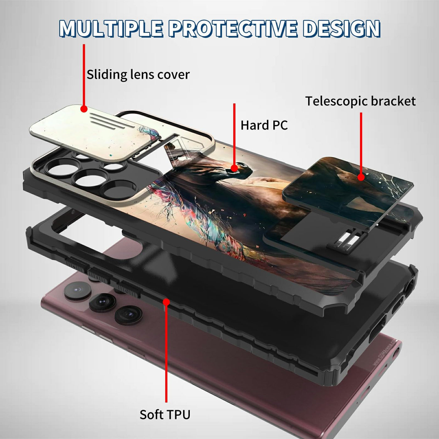 ? Compatibility ? Case Designed For Samsung Galaxy S24 Ultra 6.8 Inch 2024 Release,Not Fit Other Galaxy Phone Models ? Material: ? Soft Tpu + Hard Pc ? For Galaxy S24 Ultra Case ? Support For Wireless Charging & Easy To Install And Remove ? Made Of Hard Pc Cover + Soft Silicone Case + Hard Pc Camera Cover Materials ? For Samsung Galaxy S24 Ultra Case Reinforced Corner Design To Maximize The Absorption Of Shocks And Drops ? For Samsung S24 Ultra Case Raised Lip For Screen Protection, Avoid Your Screen Touch The Table Directly ? Providing A Perfect Whole Body Protection Against Accidental Drop, Damage, Bumps And Other Daily Damage ? Free Your Hands ? Vertical And Horizontal Kickstand Is Perfect For Free Your Hands While Video Chatting Or Watching Movies,Bring Convenience To Your Life ? Sliding Camera Cover ? Protect The Lenses From Getting Scratched And Scuffed From Your Pocket,You Just Need Slide Left And Right To Protect/Use The Camera Lens ? Unique Gift ? Exquisite And Cute Pattern Printing Design And Never Fade.It Is A Perfect Gift For Family, Girlfriend And Yourself ? Precise Cutting ? Easy Access To All The Speaker,Charging Ports,Camera And Buttons, One-To-One Correspondence Between Mobile Phone Holes And Accurate Fit ? Package Included ? 1 X For Samsung Galaxy S24 Ultra Case