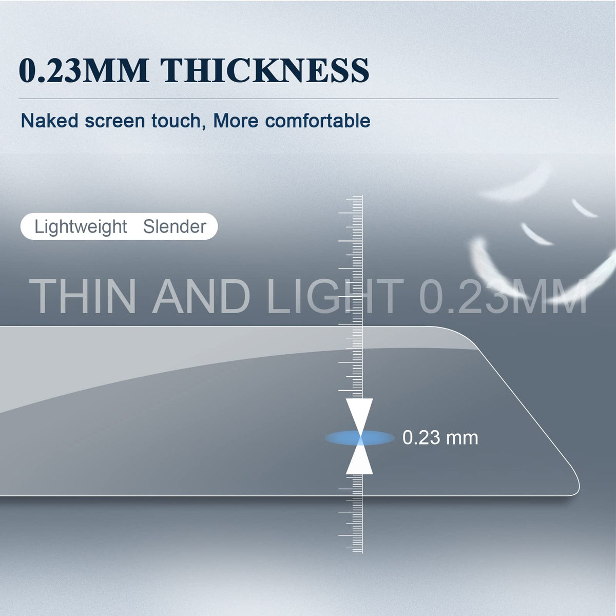 Q: How does the anti-glare feature of the screen protector work?A: The anti-glare feature utilizes AR Nano-coating technology, which minimizes reflections and enhances visibility, allowing for a clearer view of your screen even in bright light conditions.