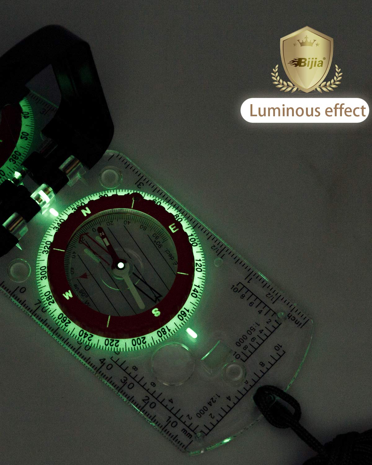 Bijia Orienteering Map Compass Sighting Mirror Compass With Adjustable Declination,Clinometer And Led Light For Hiking, Camping