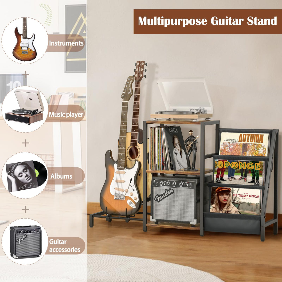 Bikoney Record Player Stand With Guitar Holder, Guitar Rack For Acoustic, Electric Guitar, Bass, Guitar Stand Multiple Guitars,
