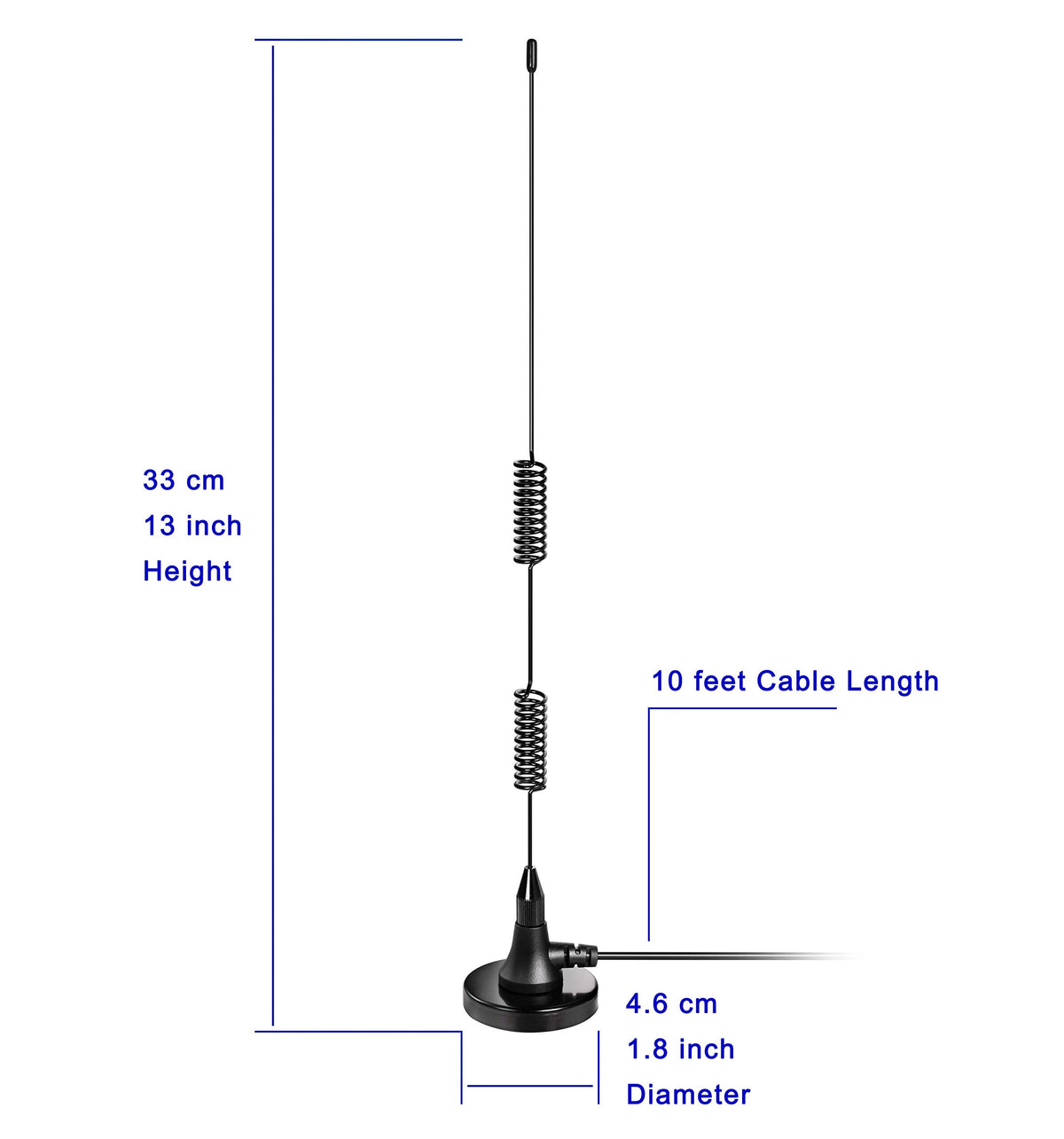 Specifications: Gain: 7Dbi Frequency Range: Vhf 136-174Mhz, Uhf 400-470Mhz Feature: With Strong Magnetic Base Mount Vswr: < 2.0; Impedance: 50 Ohm; Direction: Omni-Directional; Antenna Cable: 3 Meter Rg174 Coaxial Cable Cable Connector: Sma Male Connector Mounting Base Diameter: 45Mm; Net Weight: 78G; Operating Temperature: -20? ~ +80? Storage Temperature: -30? ~ +85? Package List: 1 X Antenna (As The Picture Shown) Compatible With: Yaesu/Vertex Standard: Vx-3R, Vx-6R, Vx-7R, Vx-8R, Vx-150, Ft-60R, Vx-160, Vx-180, Vx-400, Vx-300, Vx-800, Ft- 270R, Ft-250R,Vx-230,Vx-8D,Vx-2R; Puxing: Px-325, Px-333, Px-2R, Px-V6 Px-A6 Px-359 Px-358 Px-325; Baofeng: Uv-3R Uv-100 Uv-200. For Tyt: Th-F5 Th-Uvf9 Th-Uv3R Th-Uvf8D Th-Uvf9D;
