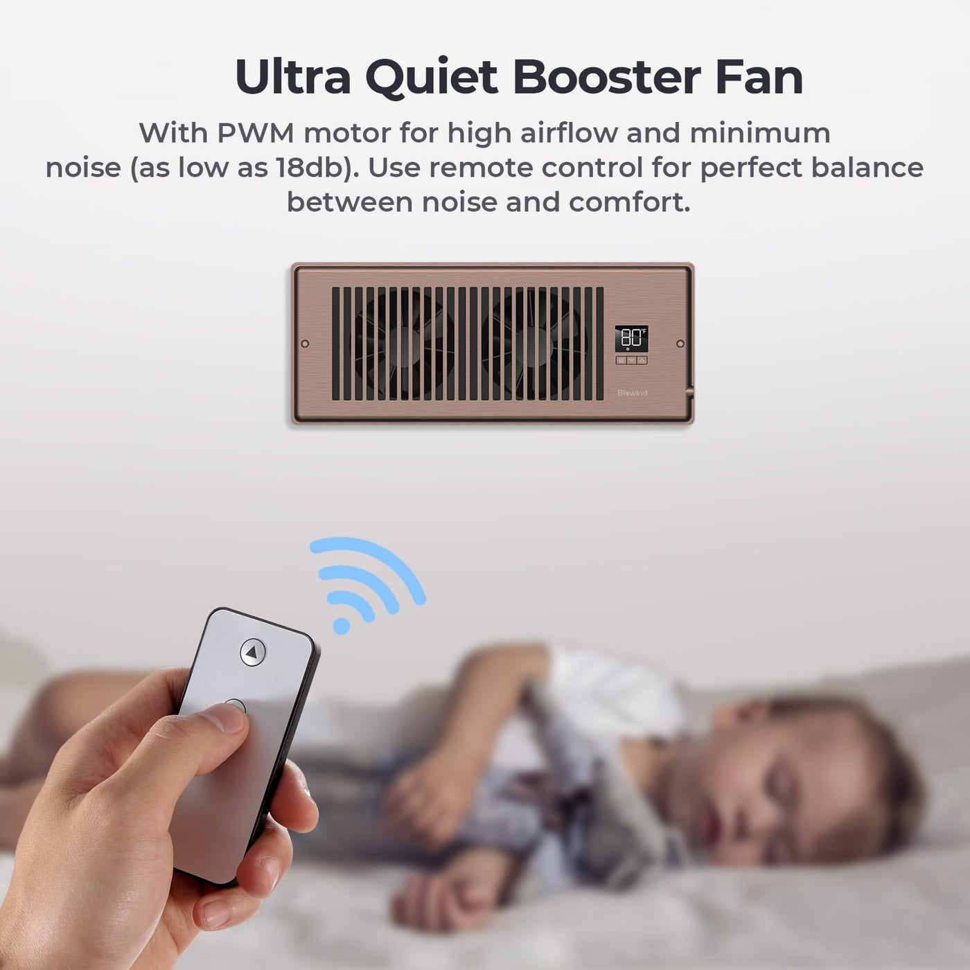 Biowind Quiet Register Booster Fan, Smart Register Vent Fits 4 '' X 12 '' Register Holes With Remote Control And Thermostat Control, Heating Cooling Ac Vent Fan - Bronze