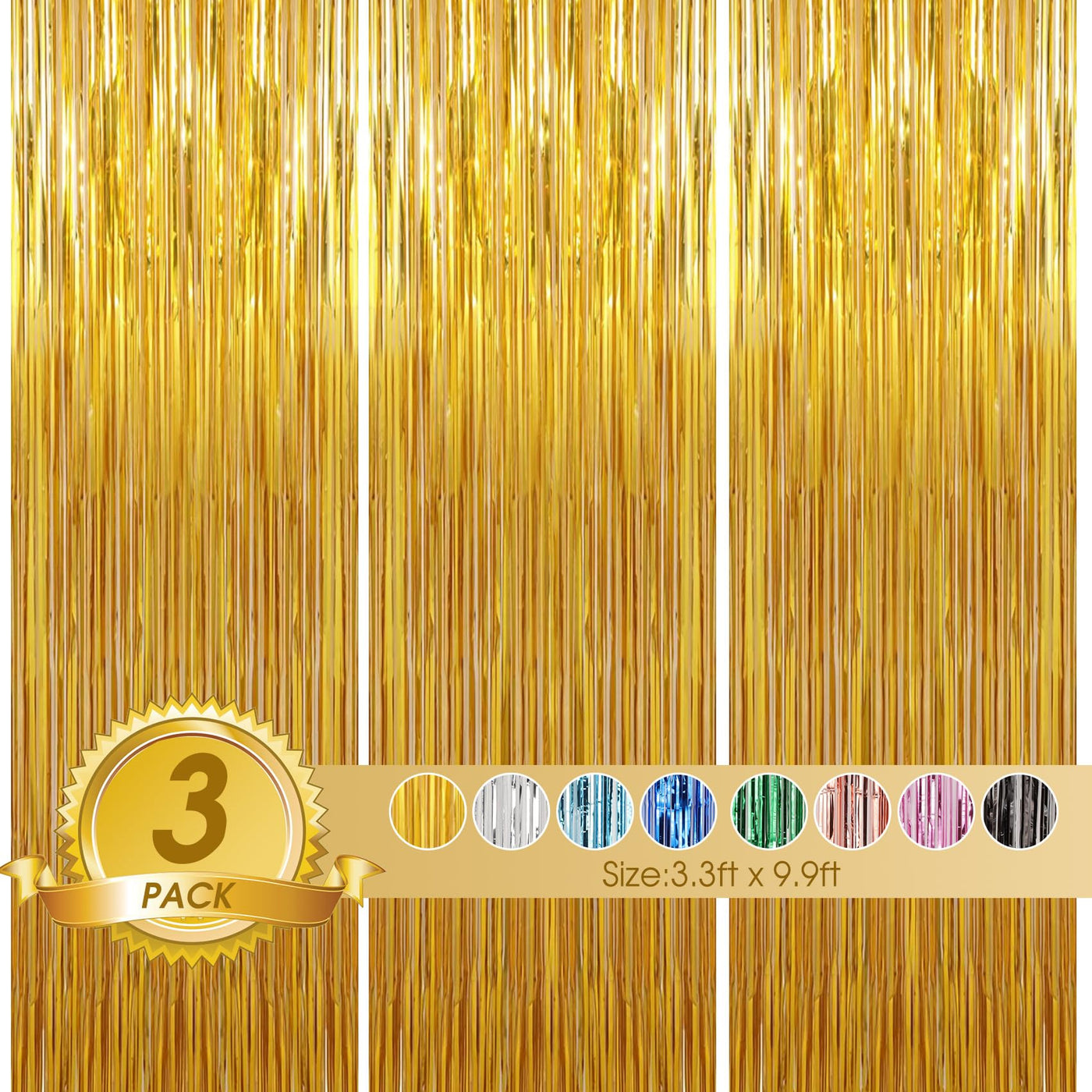 Birthday Party Decorations: 3 Pack 3.3 X 9.9 Ft Gold Foil Fringe Curtains Party Supplies, Tinsel Curtain Backdrop For Parties/Bi