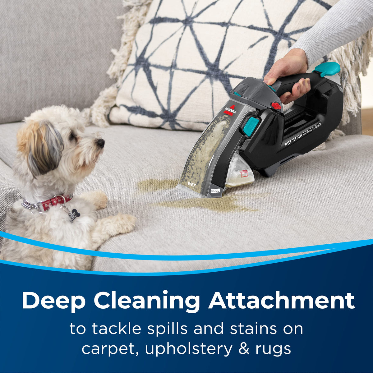 One Machine, Two Ways To Clean. Tackle Both Wet And Dry Messes With This Portable Deep Cleaner Plus A Hand Vacuum In One. Grab & Go With Cordless Convenience. Powered By A Rechargeable Lithium-Ion Battery And Stores Formula So You'Re Ready To Reach Everyday Messes Whenever And Wherever. Remove Pet & Household Messes. Tackle All Pet Messes Including Dirt, Spills, Accidents And Hair On Upholstery, Carpet Or Wherever Mess Makers Go.
