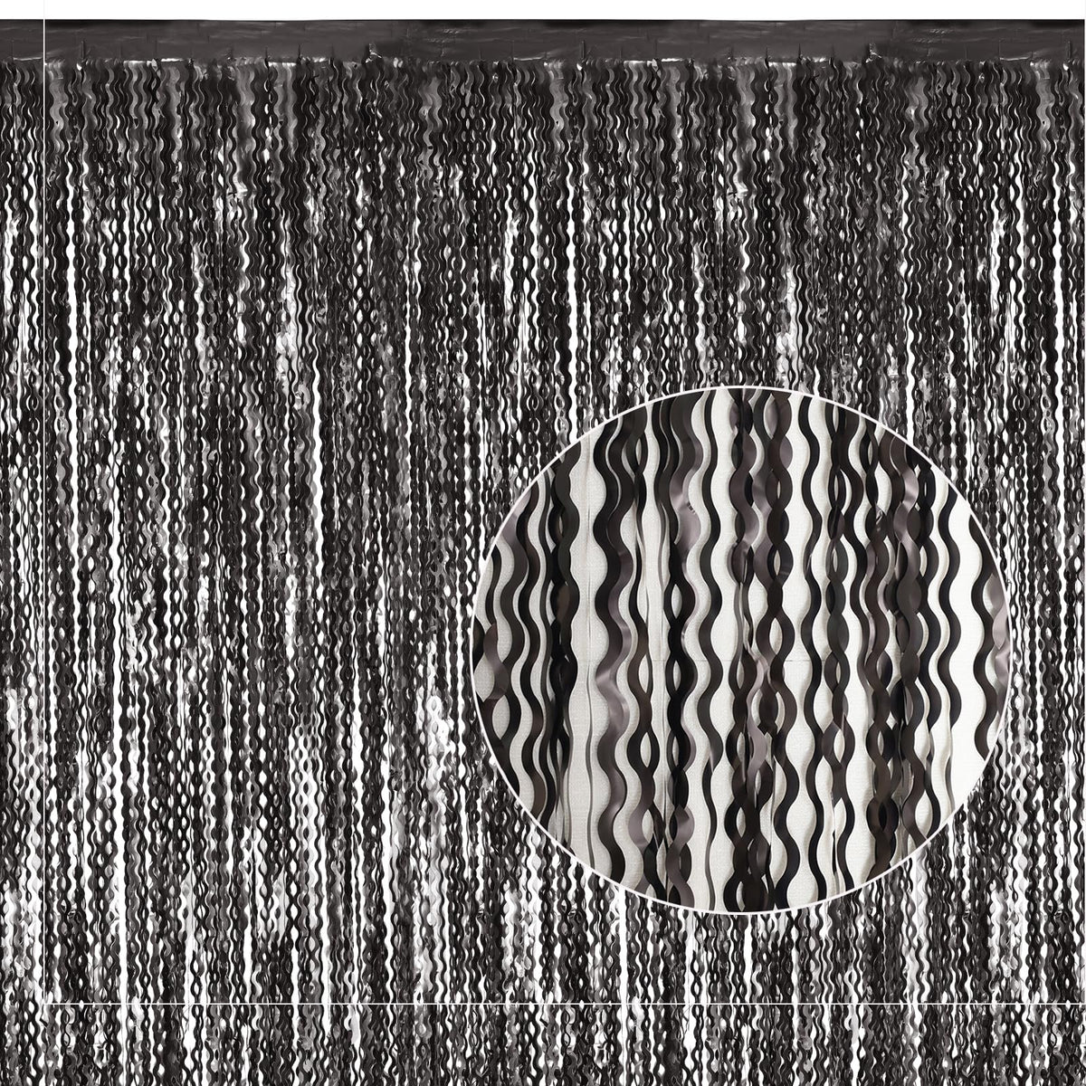 Black Foil Fringe Curtains Party Decorations 4 Pack 3.3 Ft X 6.6 Ft Foil Party Curtain Streamer Backdrop For Halloween | Gradu