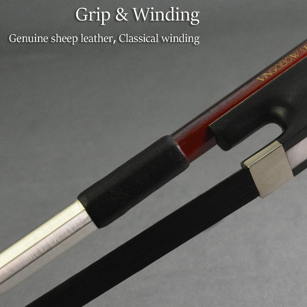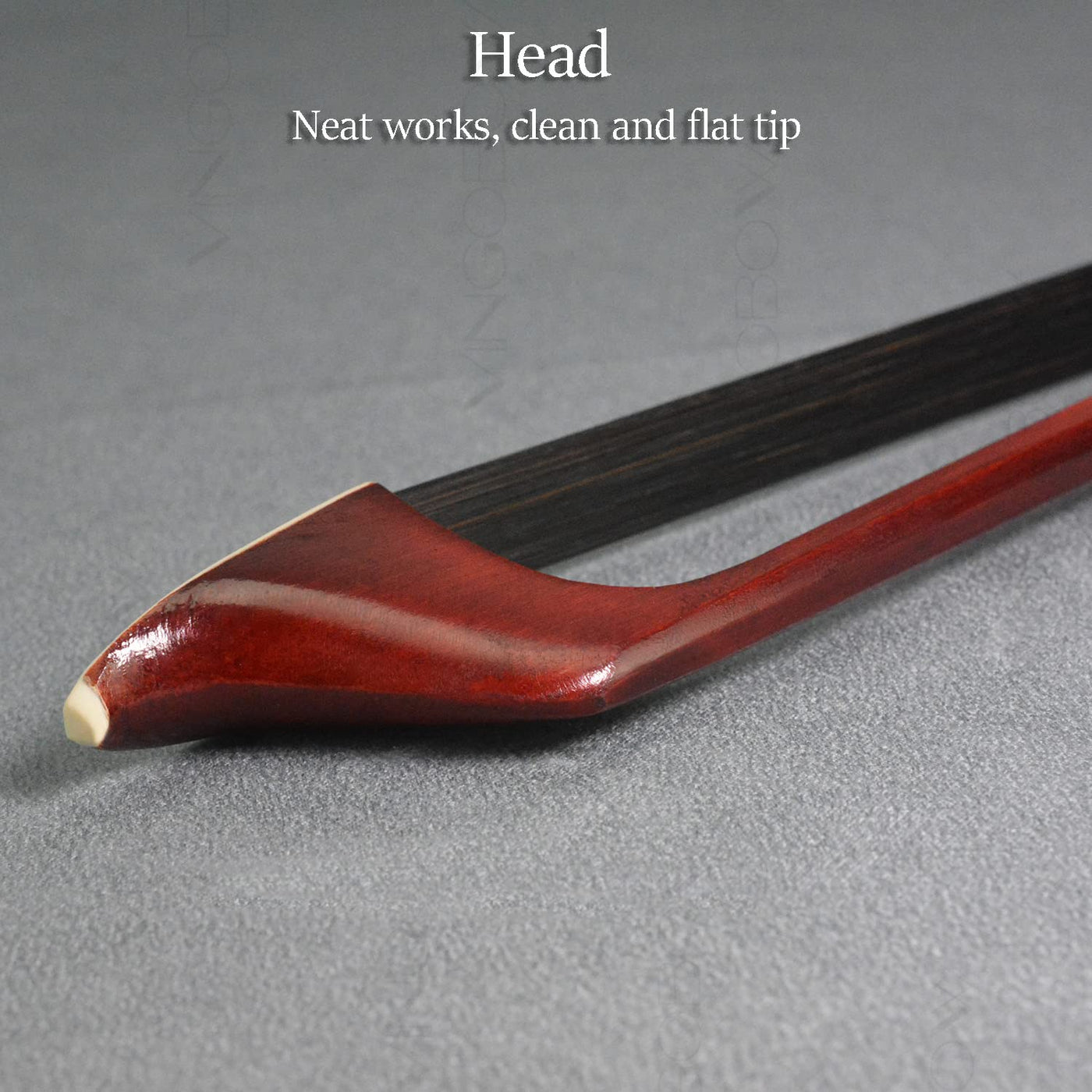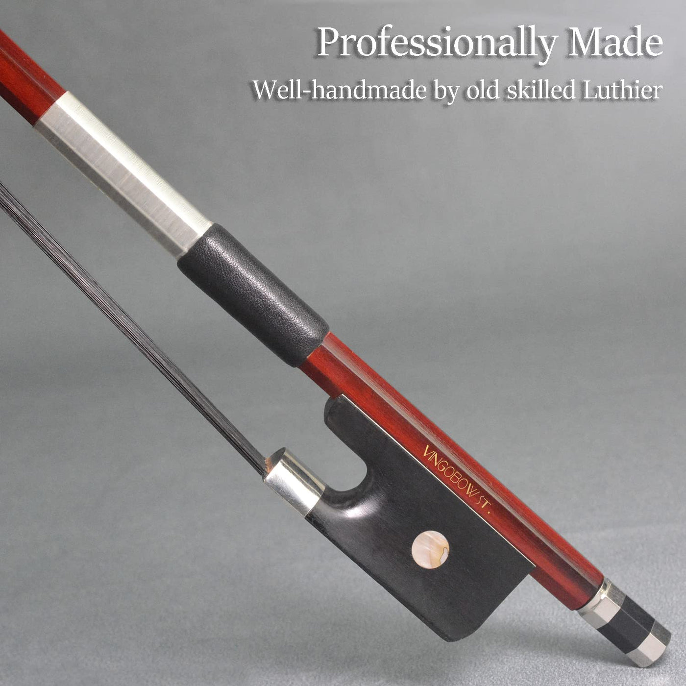 The Bow Has Brazilwood Stick, Air Dried More Than Five Years Octagonal Stick Shape, Great Wooden Bow Hand Feeling Adopting Unbleached Mongolia Horsehair, It Will Offer You Clear And Loud Sound Black Ebony Frog Shows Natural Wood Grain,And Is Decorated With Classical Parisian Eyes Genuine Leather Grip, Elegant Nickel Silver Thread Winding All Parts Are Fitted By A Same Experienced Maker From The Start To Finish Its A Good Bow For Student