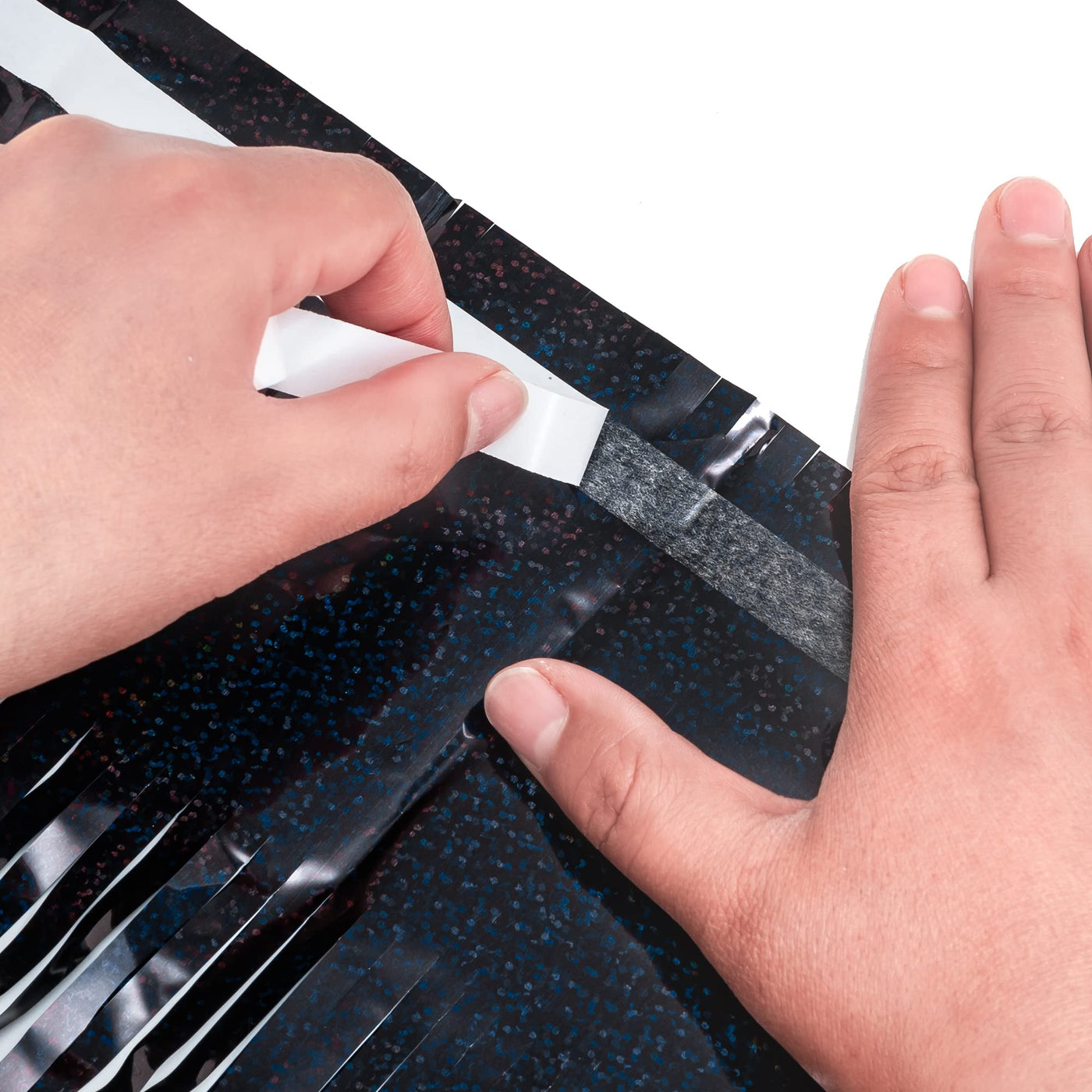 Q: How do I hang the glitter black party streamers backdrop?A: You can easily hang the glitter black party streamers backdrop using adhesive hooks, tape, or by draping it over a curtain rod or similar structure.
