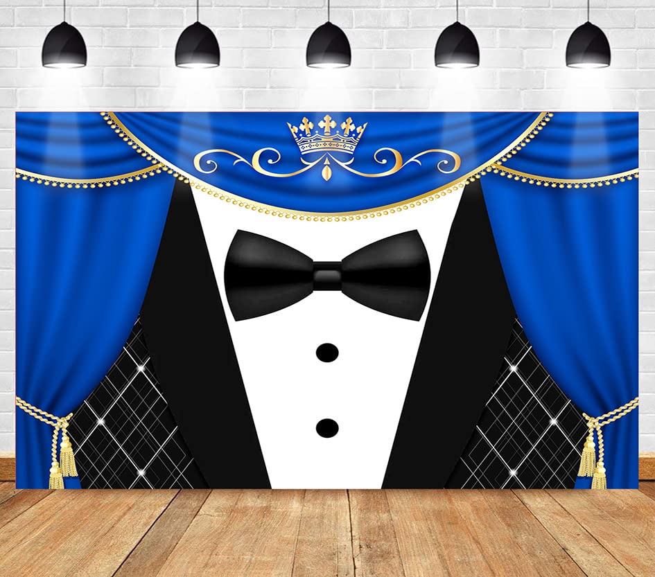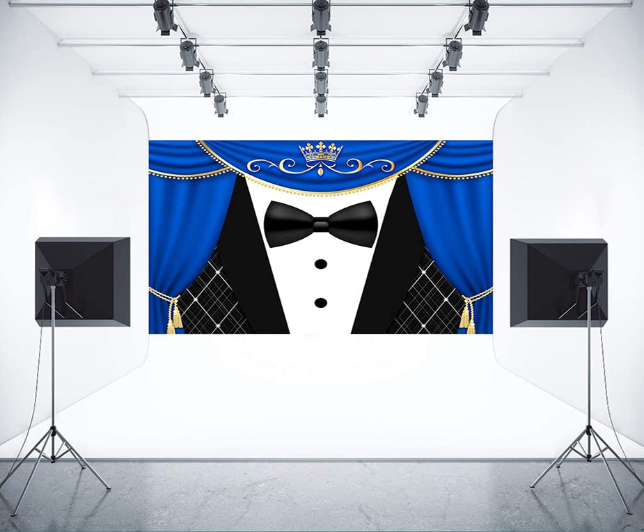 Black Tuxedo Backdrop For Father'S Day Decorations Crown Gentleman Photography Background Meetsioy Blue Curtain Photo Backdrop G