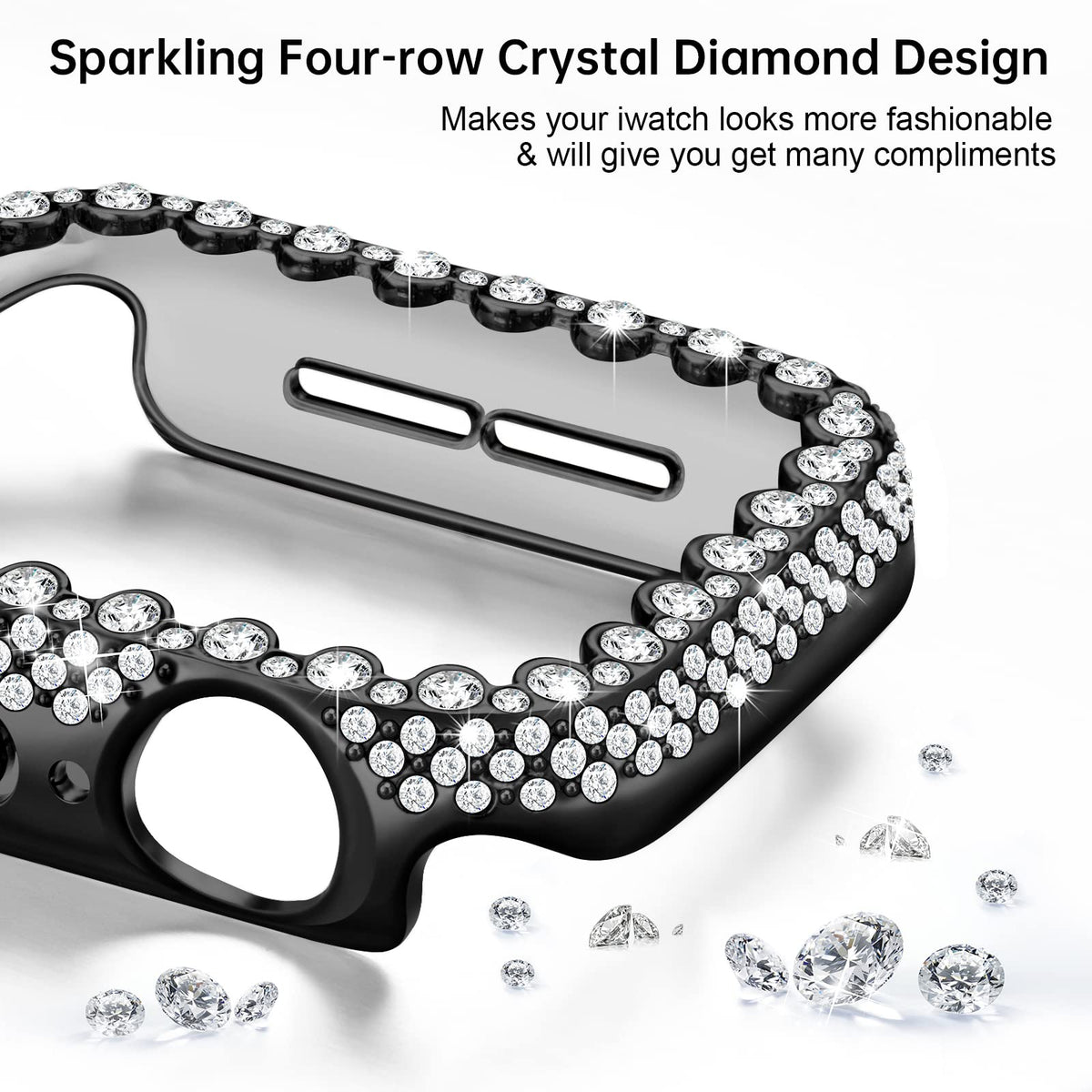 Q: What Apple Watch models is the Bling Bumper Case compatible with?A: The Bling Bumper Case is compatible with Apple Watch models including Series 8, 7, 6, 5, 4, 3, 2, 1, as well as the SE. It fits both 40mm and 44mm sizes.