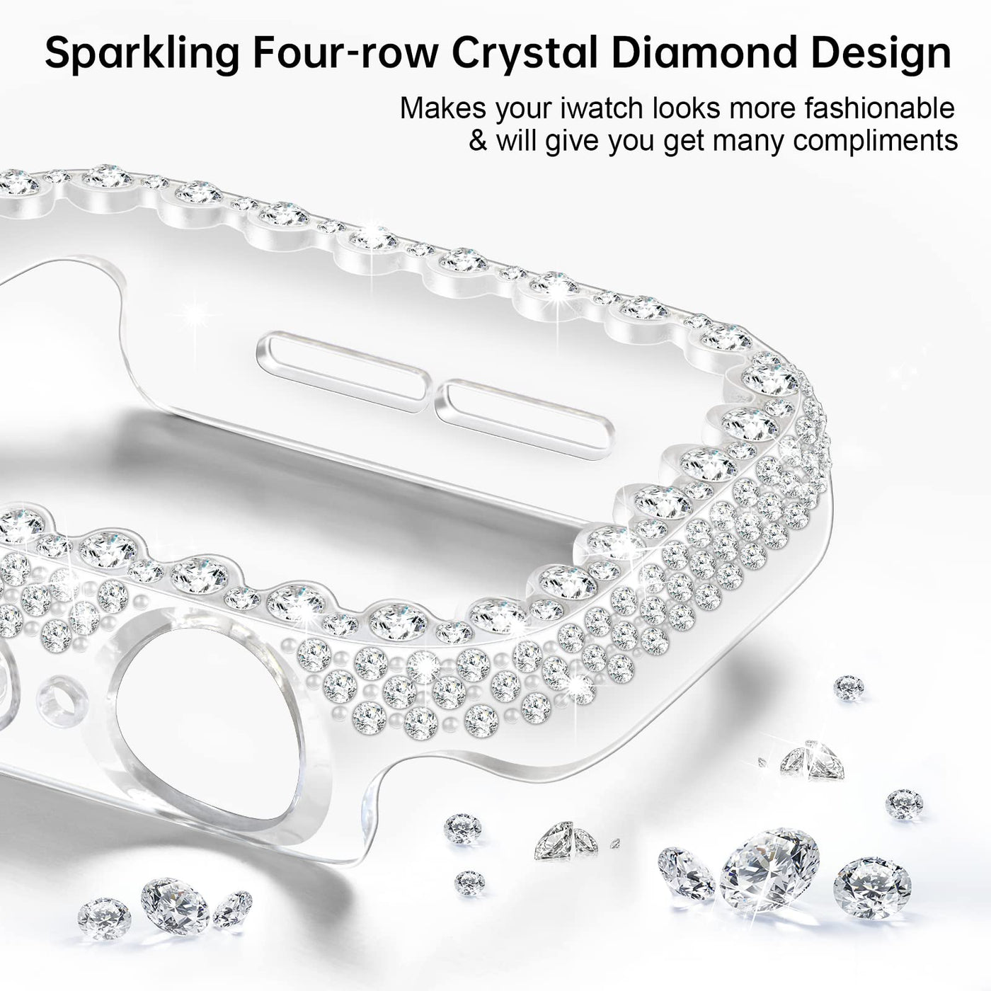 Q: Is the Bling Bumper Case compatible with all Apple Watch models?A: Yes, the Bling Bumper Case is compatible with Apple Watch models SE, Series 1 through 8, including sizes 44mm, 40mm, 45mm, 41mm, 38mm, and 42mm.