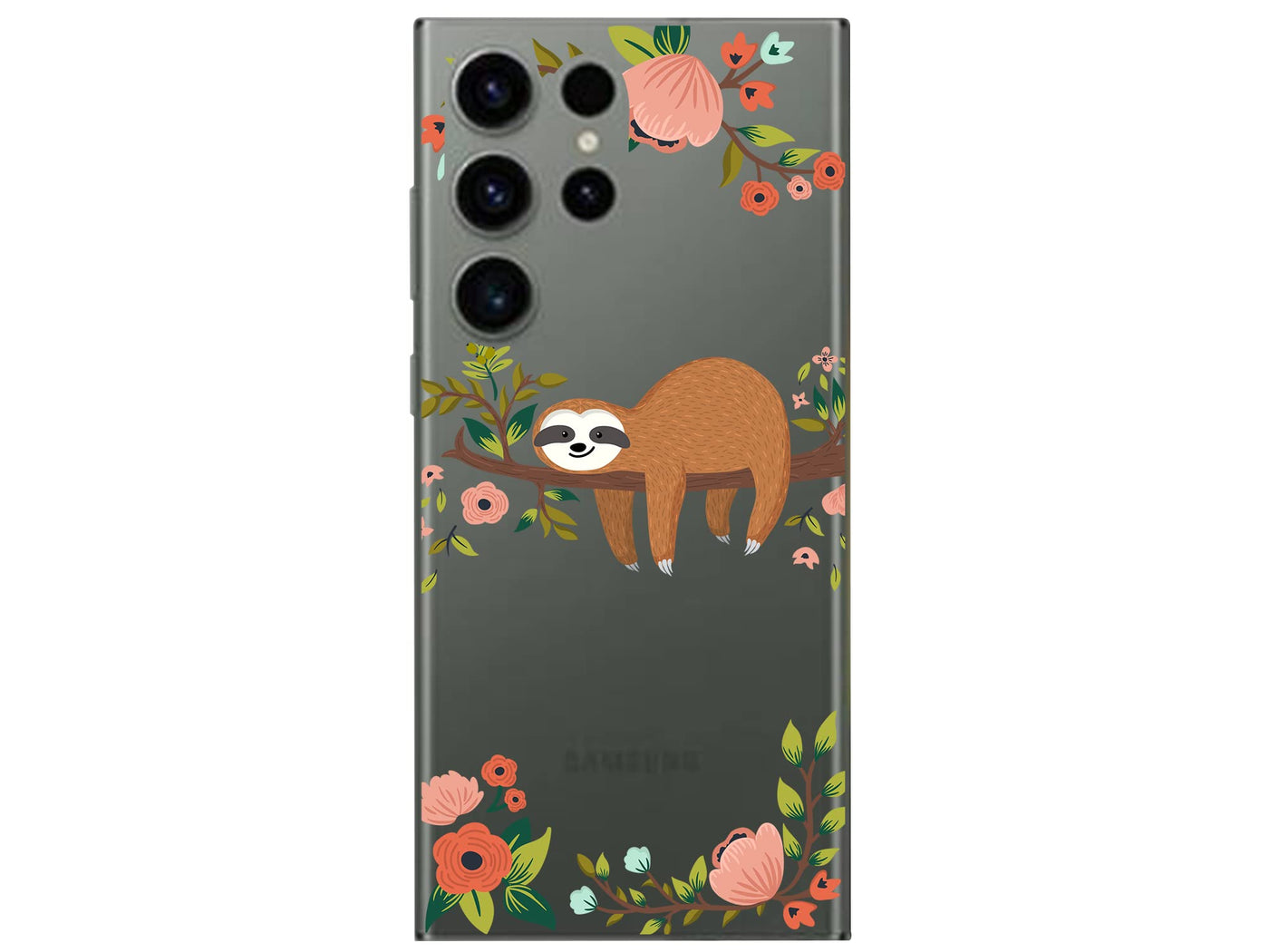 Blingy'S Samsung Galaxy S23 Ultra Case, Cute Sloth Design Fun Cartoon Animal Style Transparent Soft Tpu Protective Clear Case Co