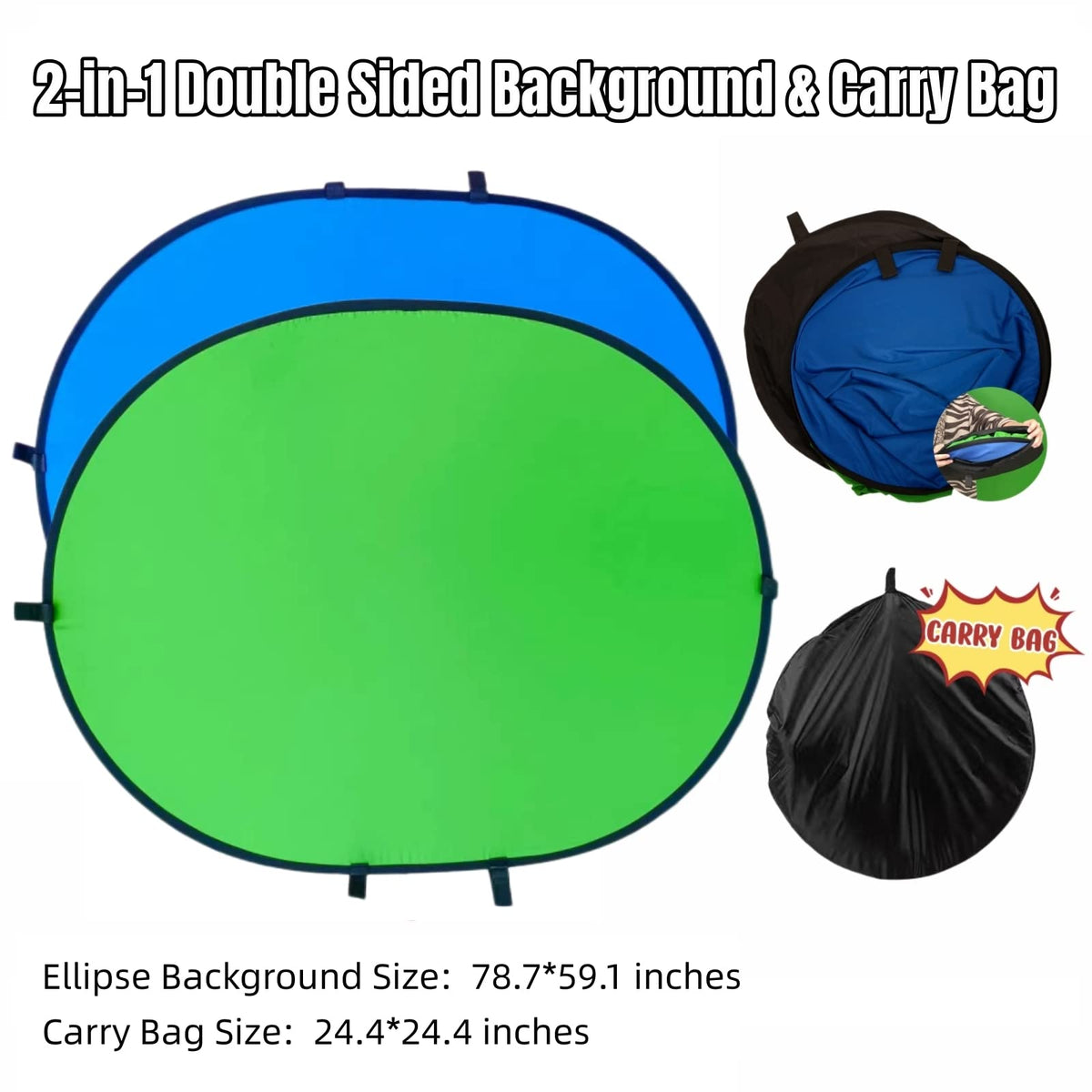 Blue Screen Green Screen Backdrop Double Sided Collapsible Green Screen With Carrying Bag,Portable Pop Up Green Screen Backgroun