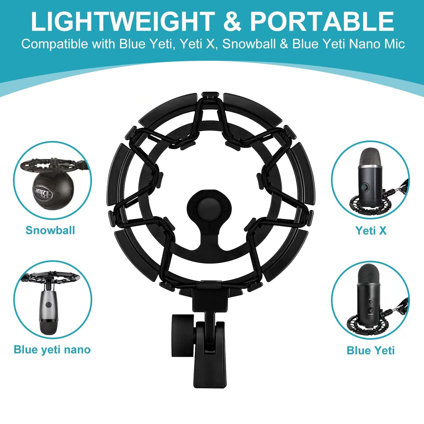 Blue Yeti Shock Mount Anti Vibration Matching Boom Arm Stand Compatible W/Blue Yeti, Yeti X, Snowball & Blue Yeti Nano Mic (Blac