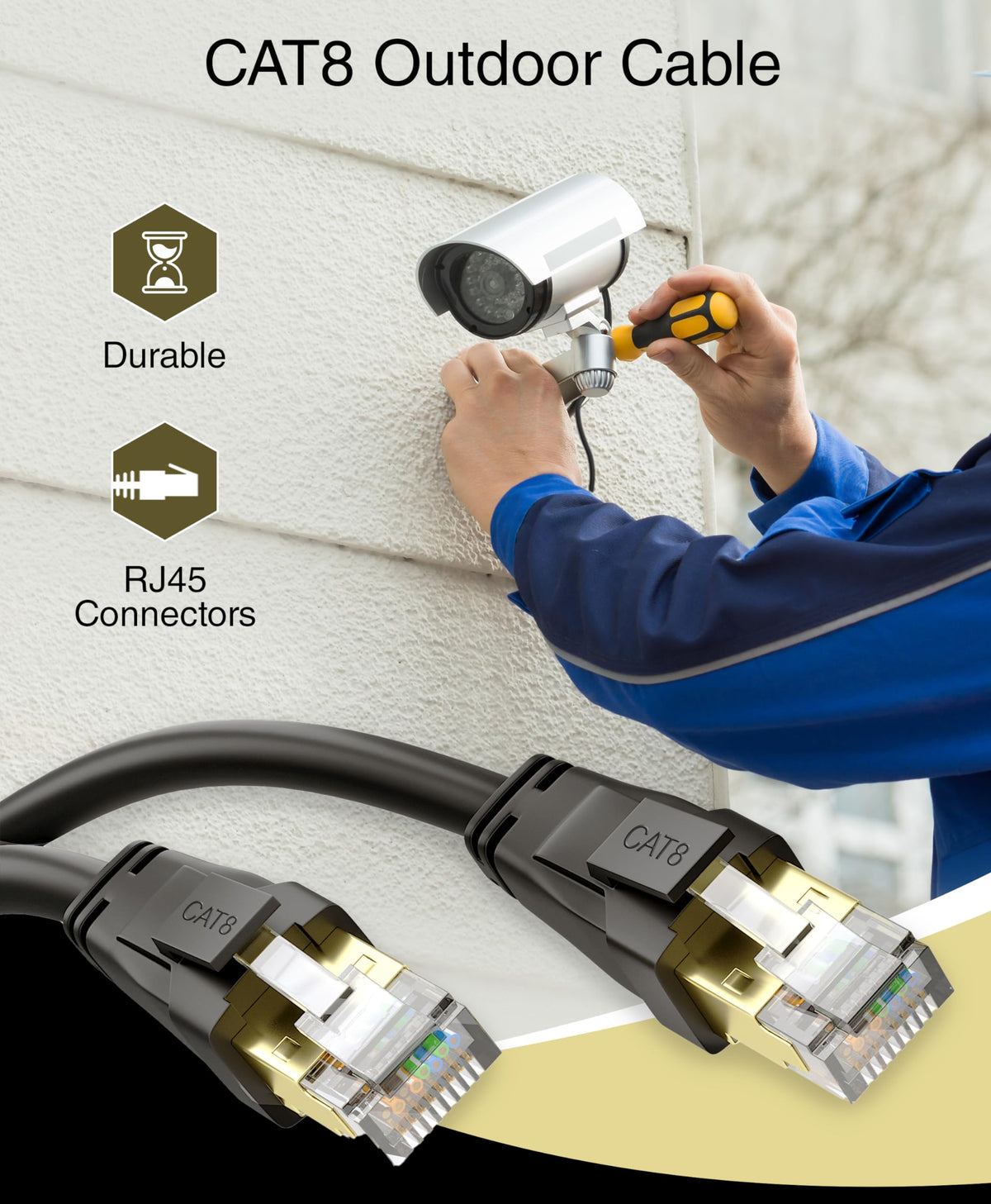 ? Cat8 Gigabit Ethernet Cable: Bluerigger Cat 8 Gigabit Network Lan Cable Supports Up To 40Gbps Data Transfer And 2000Mhz Bandwidth. Connect Your Lan/Wan Segments And Networking Gear At Maximum Speed | ? Universal Compatibility: Compatible With Game Consoles, Laptops, Pcs, Raspberry Pi 4, Routers, Wifi Extenders, Wi-Fi Mesh, Network Switch, Poe Devices, Smart Tv, Bt Smart Hub, Network Adapters, Patch Panel, Network Printers, Tv Box, Nas, Voip Phones With Rj45 Input | ? Extraordinary Performance: Superfast Data Transfer For Server Applications, Cloud Computing, Online High Definition Video Streaming, Video Surveillance And More. Compatible With Ai Smart Products Such As Alexa, Google Home, Apple Siri That Require High Speed Network | ? Superior Build: Double Aluminum Shielded Twisted Pairs (Stp) And 100% Pure Copper Help Minimize Interference. Snagless Design, 26Awg Cable Thickness, Strain-Relief Boots And 50 Micron Gold Plated Rj45 Connectors Provide Durability And Ensure A Secure Connection | ? Warranty & Testing: Tia, Reach, Rohs Compliant. Bluerigger Lifetime Warranty And Us-Based Customer Support