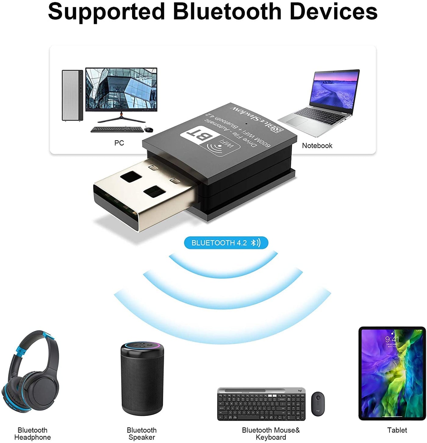 Blueshadow Mini 2 In 1 Usb Wifi Bluetooth Adapter Ac600 2.4G/5G Dual Band Wireless Network Adapter For Desktop Pc, Bluetooth 4.2, Wpa3 Network Security, Supports Windows 11,10, 8.1,8, 7