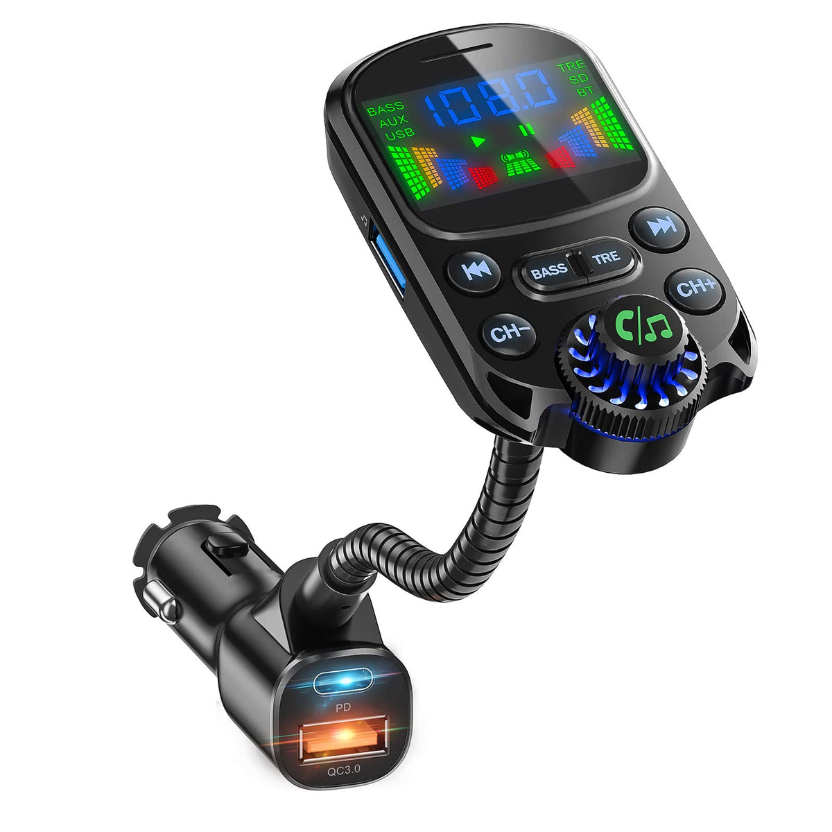 Bluetooth 5.3 Fm Transmitter For Car Soarun Bluetooth Car Adapter Pd30W & Usb Port Fast Charge Hifi Treble & Bass Player 1.