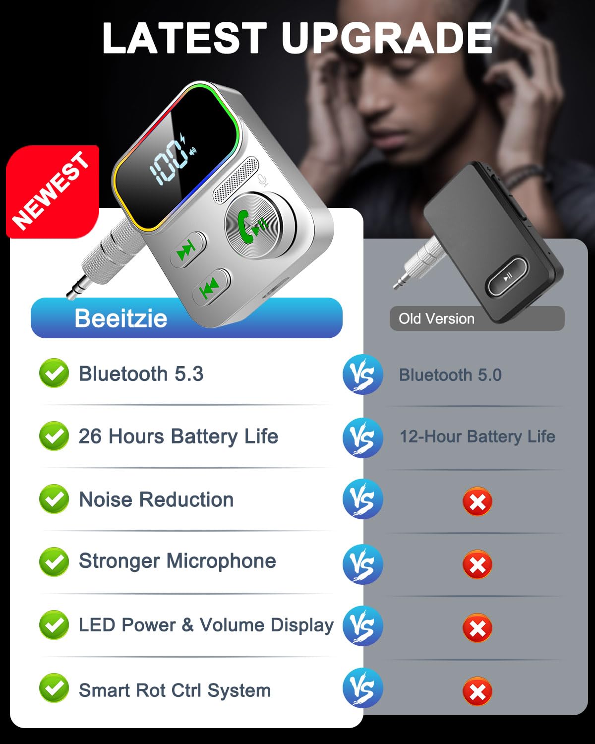 Bluetooth 5.3 Receiver For Car,Upgraded Enhanced Mic And Led Display,Bluetooth Car Adapter,Wireless Audio Receiver For Car/Home