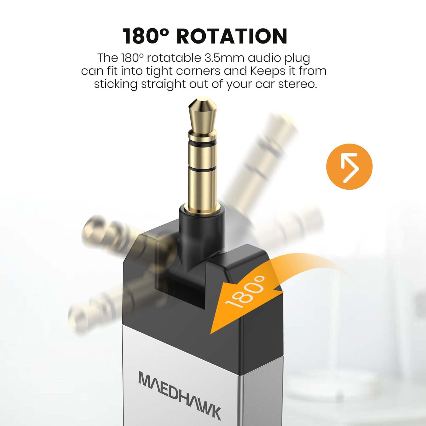 Bluetooth Aux Adapter For Car, Maedhawk Aux To Bluetooth 5.2 Audio Receiver For Car Home Stereo Speaker Headphone, Rotatable 3.5Mm Wireless Aux Bluetooth Car Adapter, Handsfree Calls, A2Dp