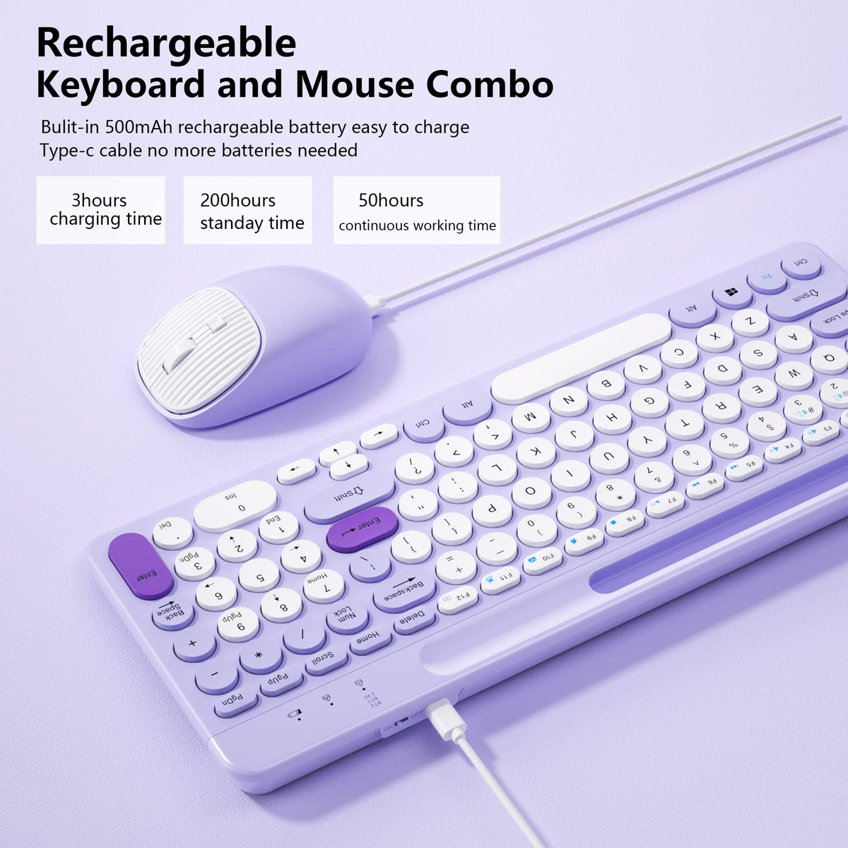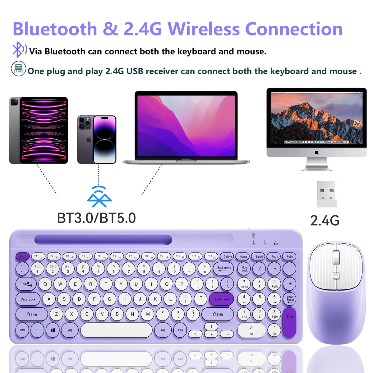 Bluetooth Keyboard And Mouse Wireless, Rechargeable Keyboard And Mouse Combo With Phone Holder (Bluetooth 5.0+3.0+2.4Ghz) Quiet