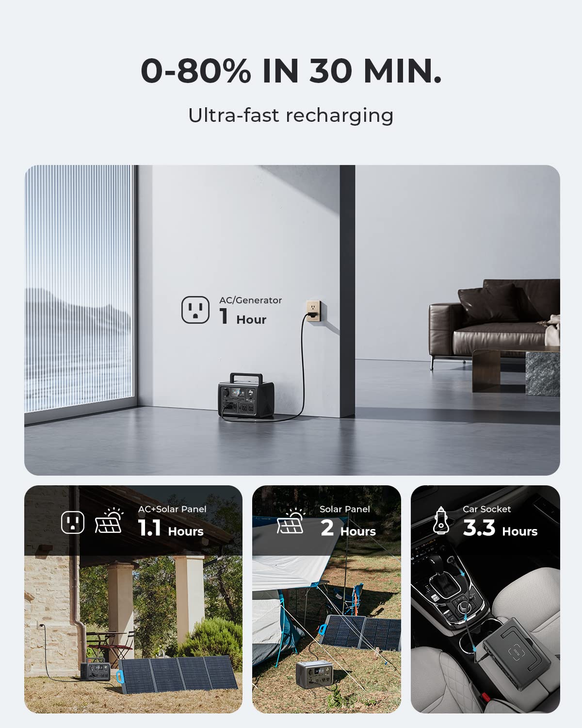 Bluetti Eb3A Portable Power Station. 268Wh Lifepo4 Battery Backup