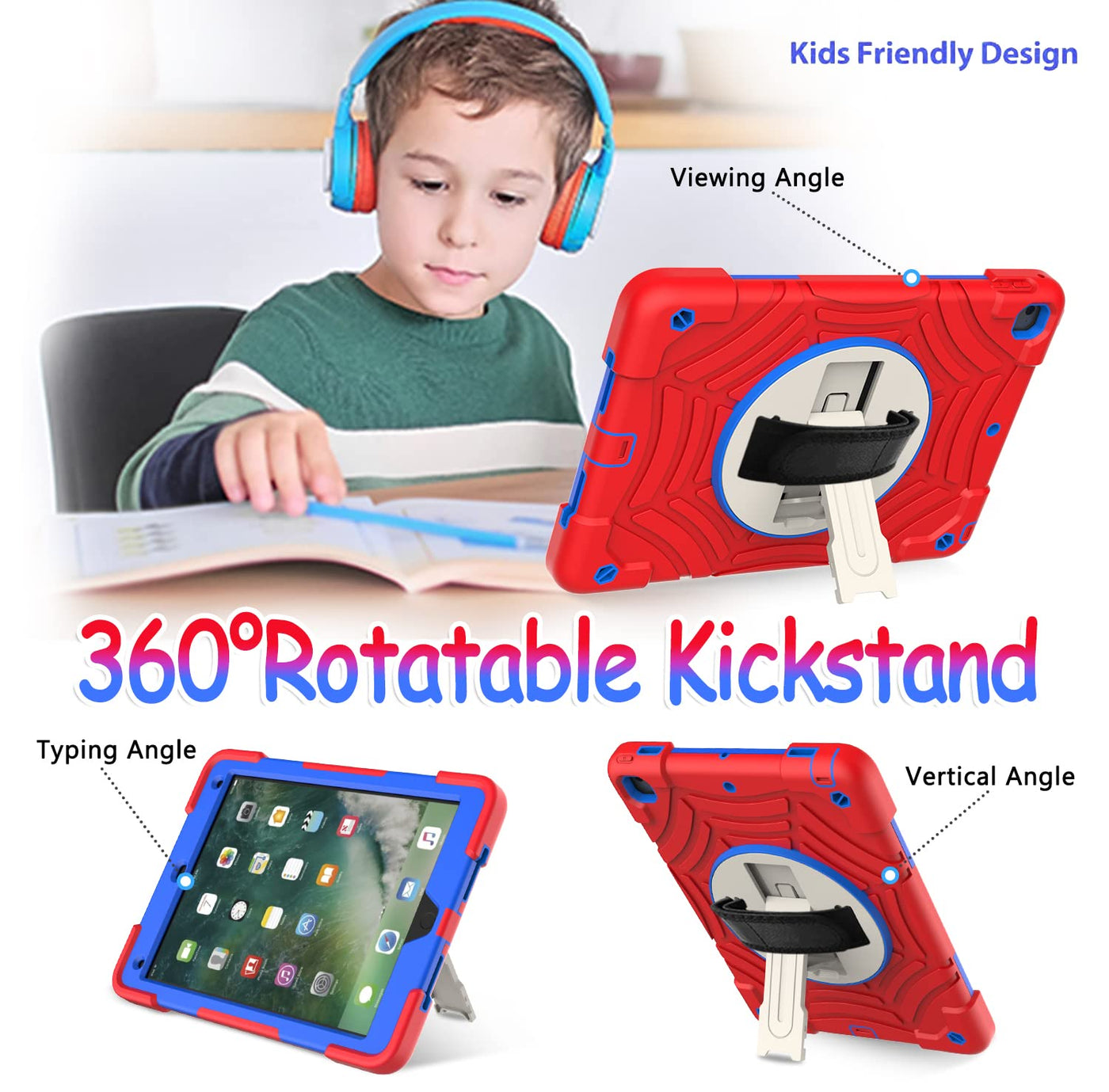 Bmouo Case For Ipad 6Th/5Th Generation (9.7 Inch, 2018/2017), With Screen Protector, 360 Rotating Stand & Hand & Shoulder Strap Kids Case For Ipad 6Th/5Th Gen/Ipad Air 2, Red
