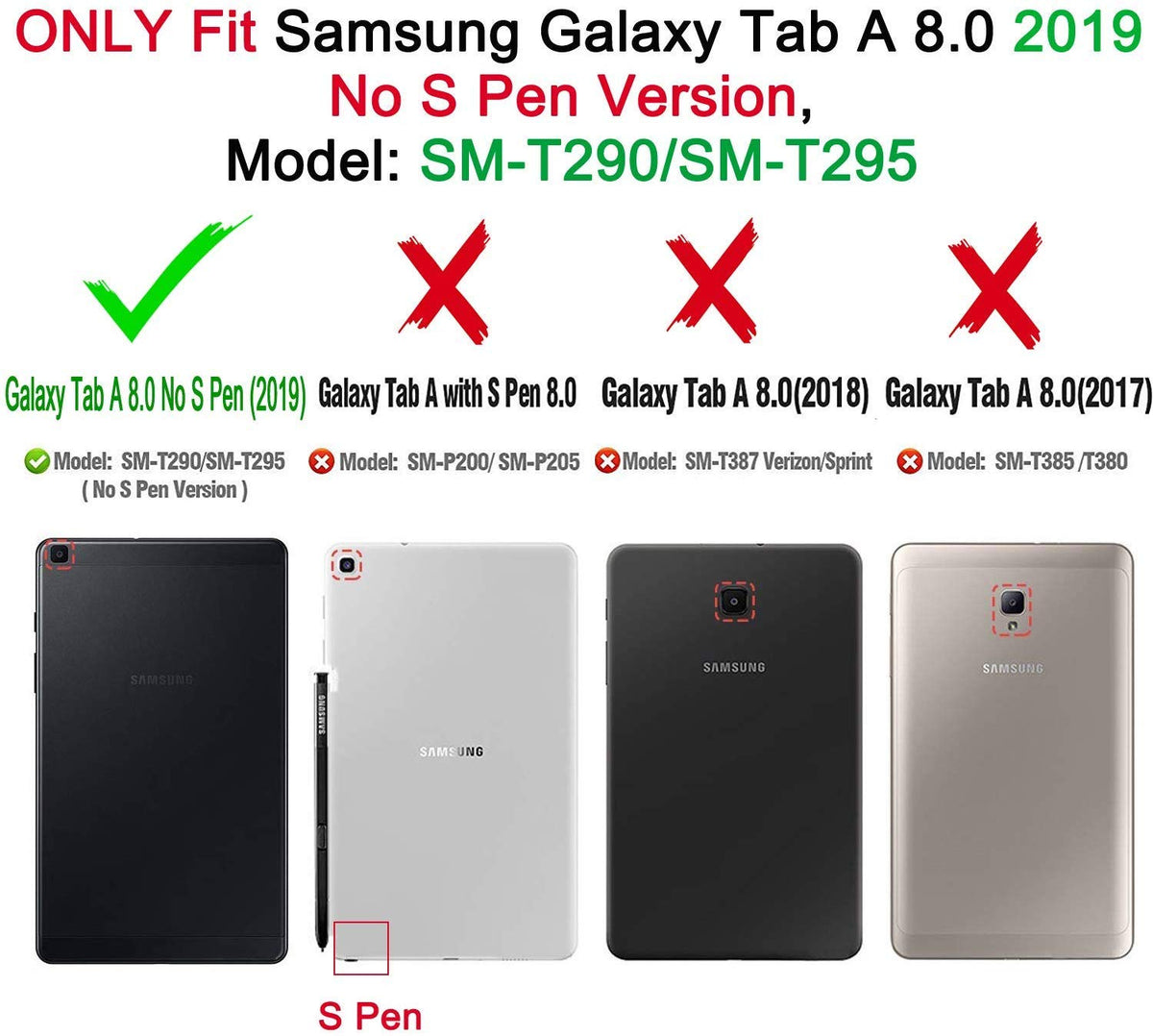 Bmouo Kids Case For Samsung Galaxy Tab A 8.0 2019 Sm-T290/T295, Galaxy Tab A 8.0 Case 2019, Shockproof Light Weight Protective Handle Stand Case For Galaxy Tab A 8.0 Inch 2019 Without S Pen- Rosecompatibility:- Custom Designed For Your Precious Samsung Galaxy Tab A 8.0 Inch 2019 Release Sm-T290/T295 - Not Fit Tab A 8.0 2019 With S Pen Model P200/P205.Features:- Versatile And Exciting, Free-Standing And Kid-Friendly Case For Galaxy Tab A 8.0 2019 Sm-T290/T295 - Samsung Tab A 8.0 Case 2019 With Precise Opening Holes Give Easy Access To Buttons, Ports, Cameras - Built-In Bendable Grip Handle For Taking Your Samsung Tab A 8.0 Tablet Anywhere And Everywhere. - Raised Screen Bezel Edges For Extra Protection When Fall / Comes In A Series Of Enjoyable Bright & Fun Colorspackage Contents:1* Kids Galaxy Tab A 8.0 Case (2019 Release Sm-T290/T295 )Please Note:- Please Remove The Black Insert Before Install Your Samsung Tab A 8.0 Case 2019- This Case Not Work For Samsung Galaxy Tab A 8.0 2019 With S Pen Model P200/P205