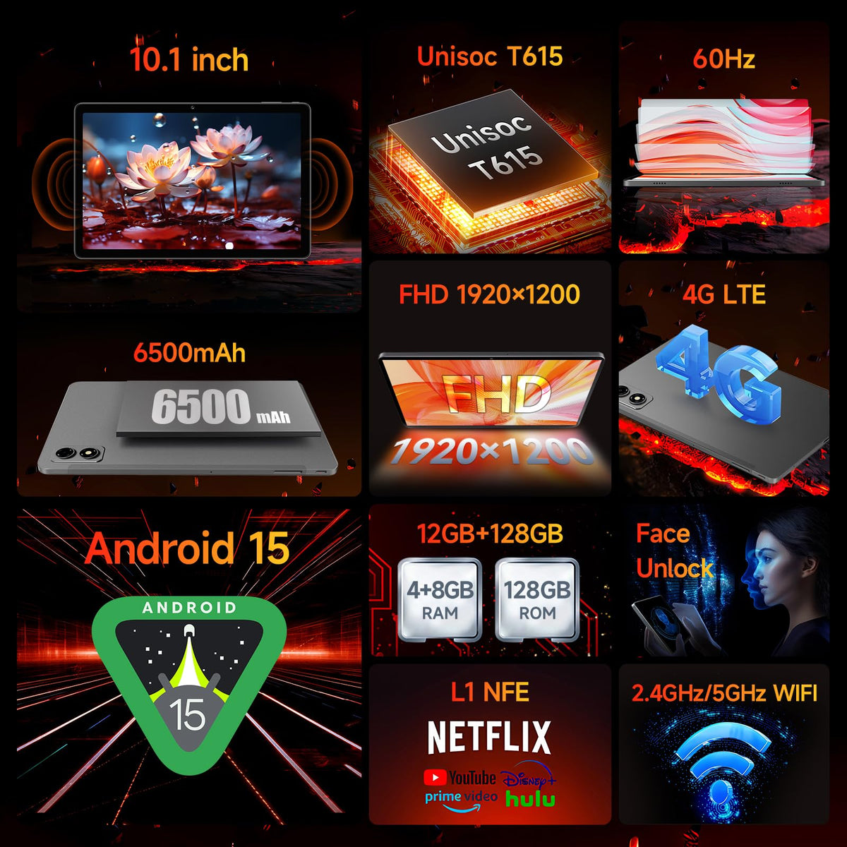 Bncf [2025 New Released Android 15] 10.1 Inch Tablet, Fhd Ips 1920X1200 And 60Hz Reflex, Widevine L1, Unisoc T615 (8 Core), 12Gb