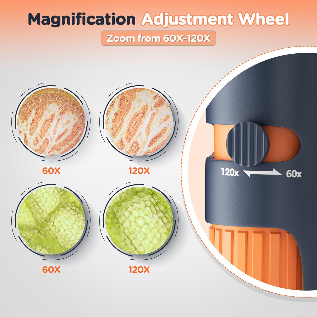 Q: What is the magnification range of the BNISE Pocket Microscope?A: The BNISE Pocket Microscope offers a magnification range of 60X to 120X, making it ideal for observing details in nature that are not visible to the naked eye.